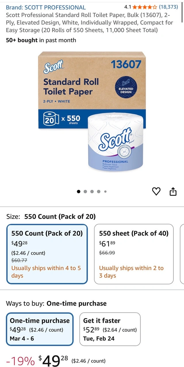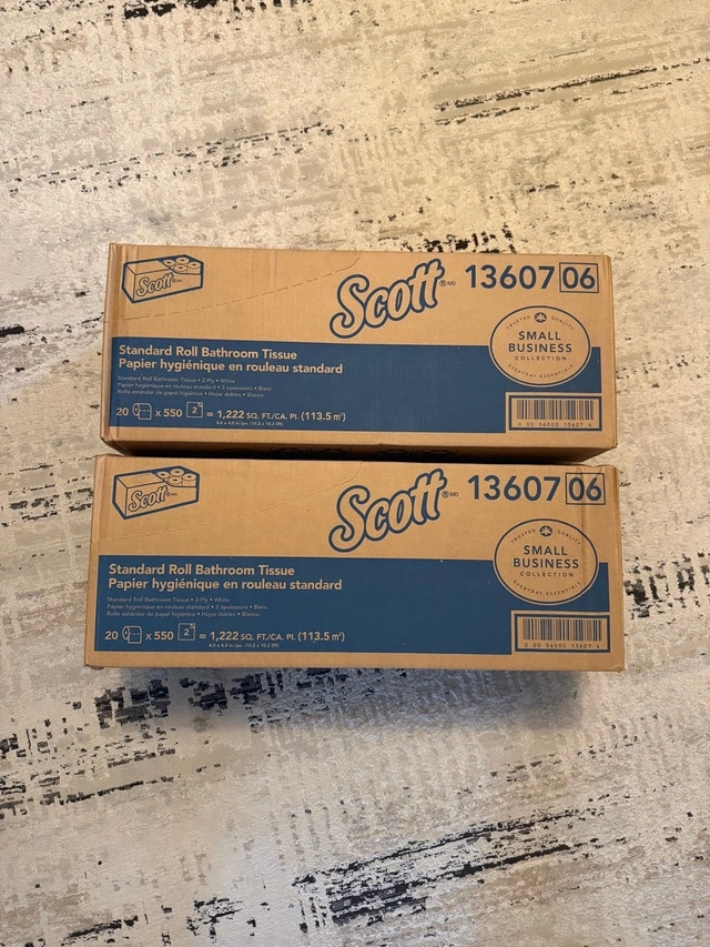 Stock up with this 2-pack of Scott Standard Roll Bathroom Tissue. Each box contains 20 rolls of 550-sheet, 2-ply standard rolls. These are new and ready for use!