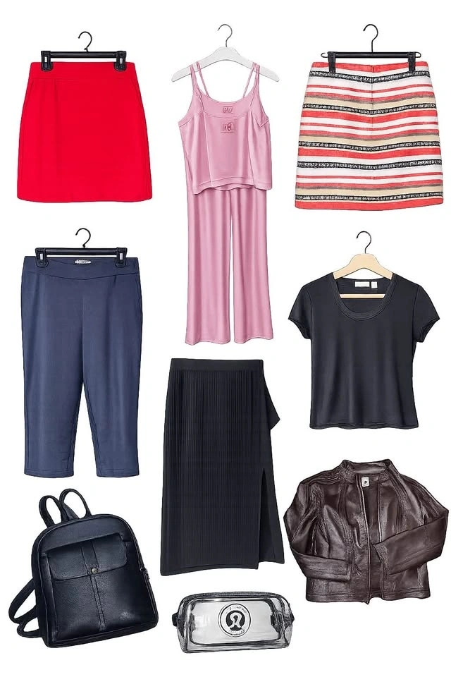 Doing a little closet clean-out and selling some beautiful clothes that deserve more wear. Gently used pieces in excellent condition. Most items were only worn a handful of times. Mostly: Size 12 bottoms, Large tops. Includes a mix of dresses, skirts, skorts, activewear, casual tops, a few layering pieces, bags, wallet, and leather jacket. Everything is clean, well kept, and from a smoke-free home. Great chance to grab some stylish pieces for less.