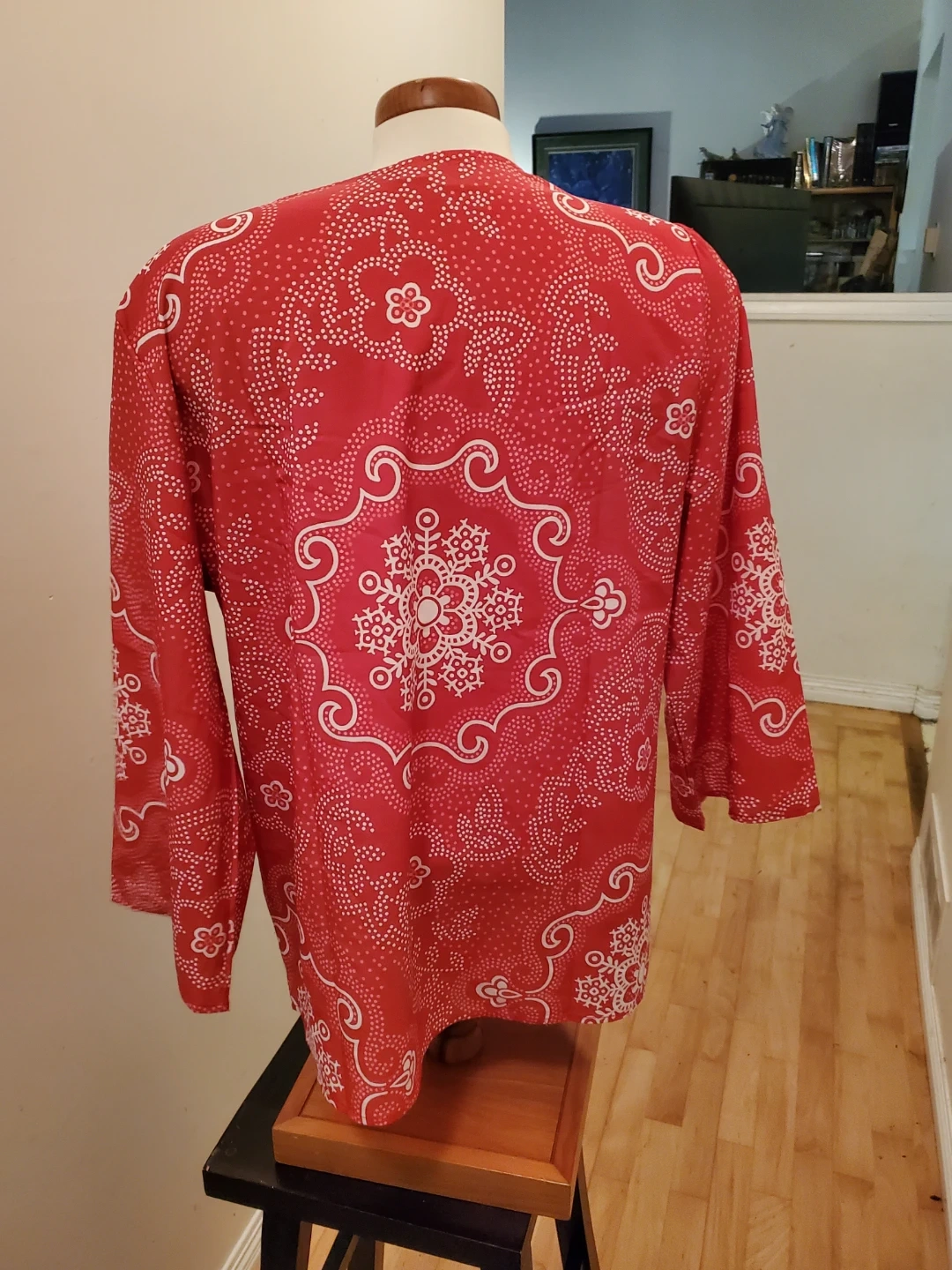 Red and White Patterned Tunic Top
