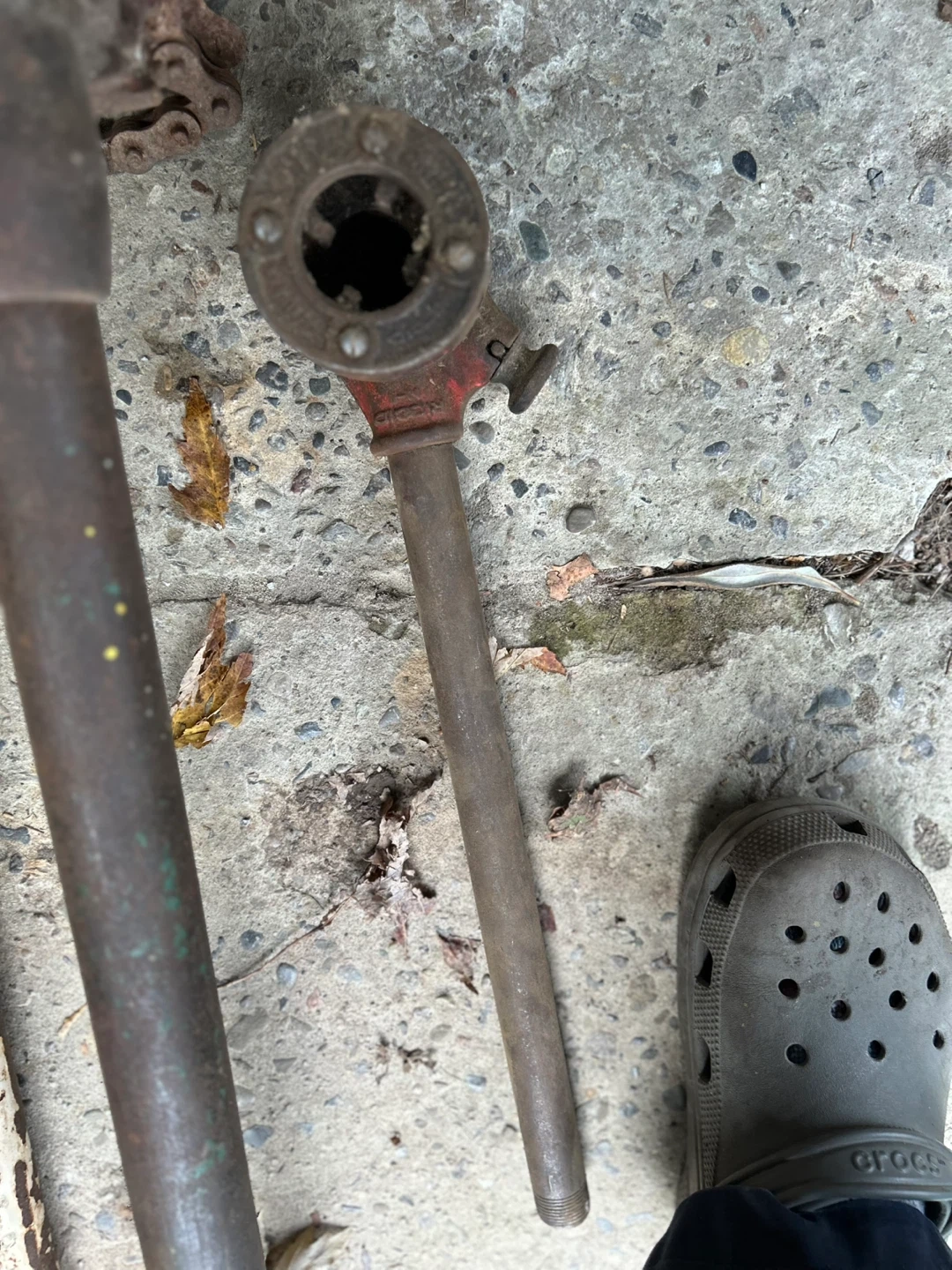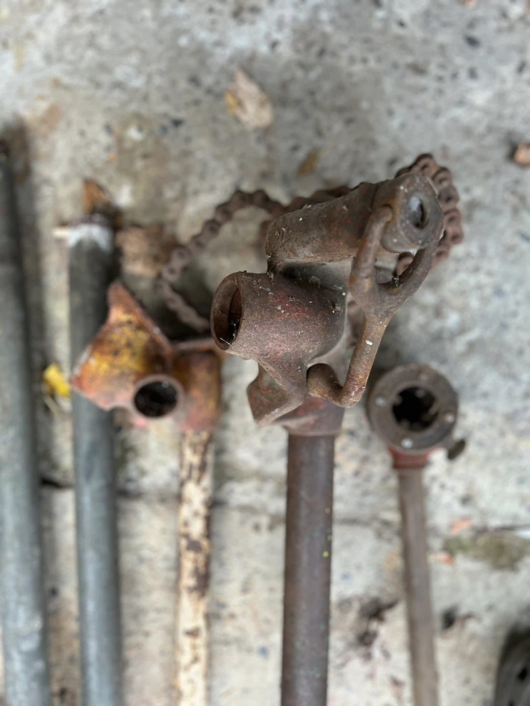 I'm selling a pipe threader. It is in used condition. 1” dye and handle. Also a chain vice. Made by Riged.