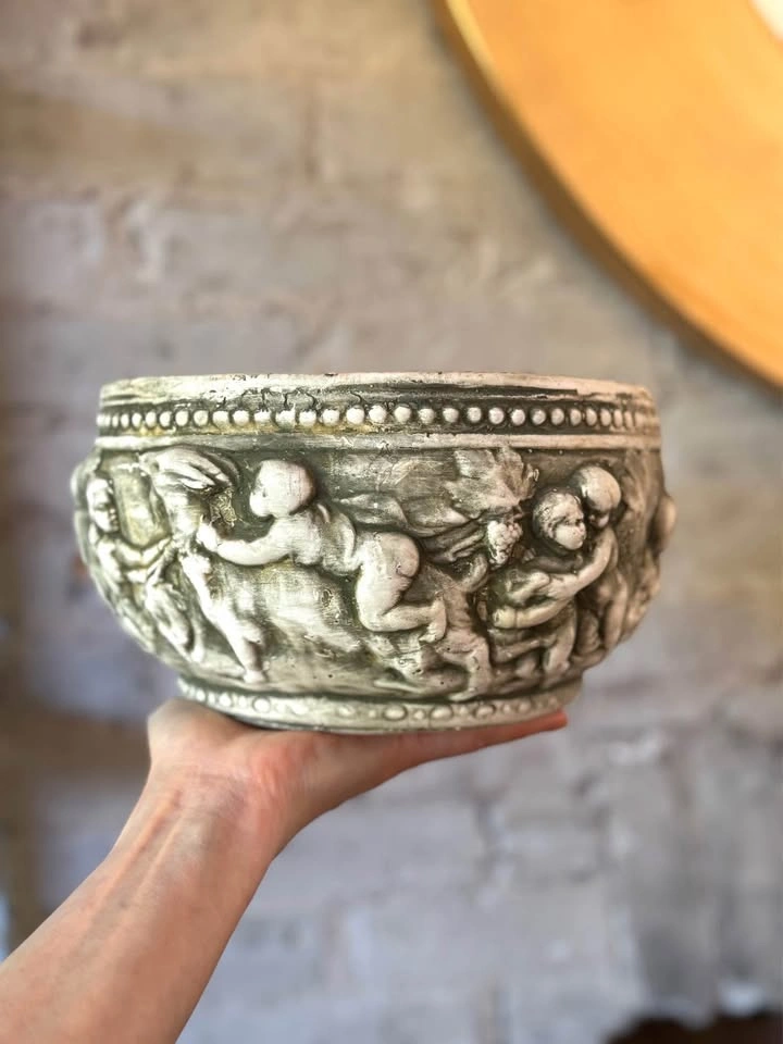 Cherub, Angel, Pedestal Bowl, Centerpiece, Decorative Bowl, Vintage Decor, Antique, Cottagecore, Shabby Chic, Porcelain, Ceramic, Home Decor, Tabletop Decor, Collectible, Cottage Core