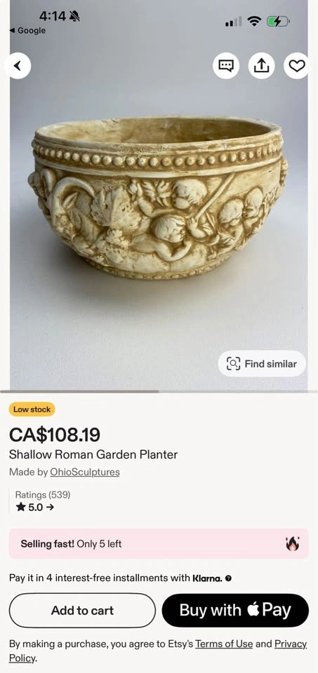Roman Garden Planter looks fantastic with a blooming flower, perfect for a bathroom, kitchen, patio, porch or virtually any room.