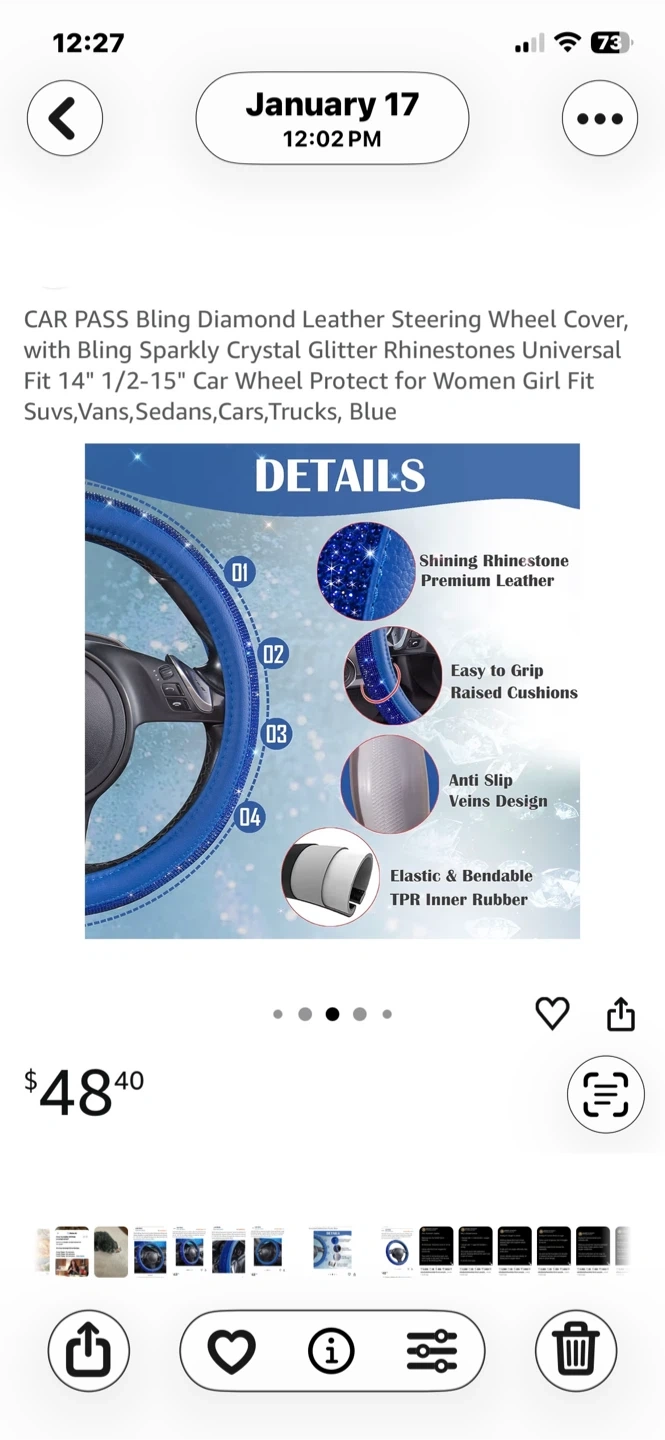 This CAR PASS steering wheel cover adds sparkle to your car. It's made of premium leather with shiny rhinestones. The cover is easy to grip and features an anti-slip design with a bendable rubber inner. Fits most car wheels 14" to 15"!