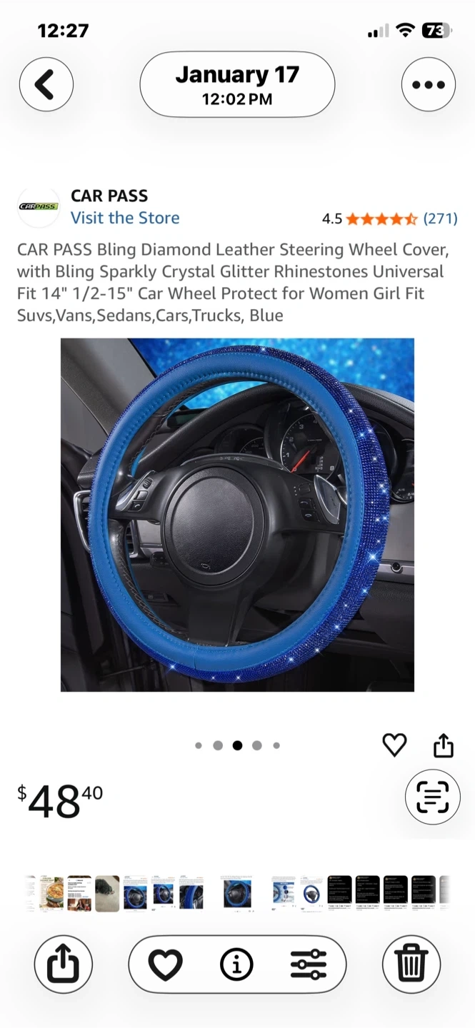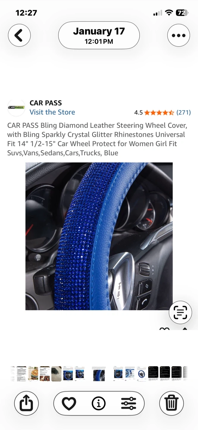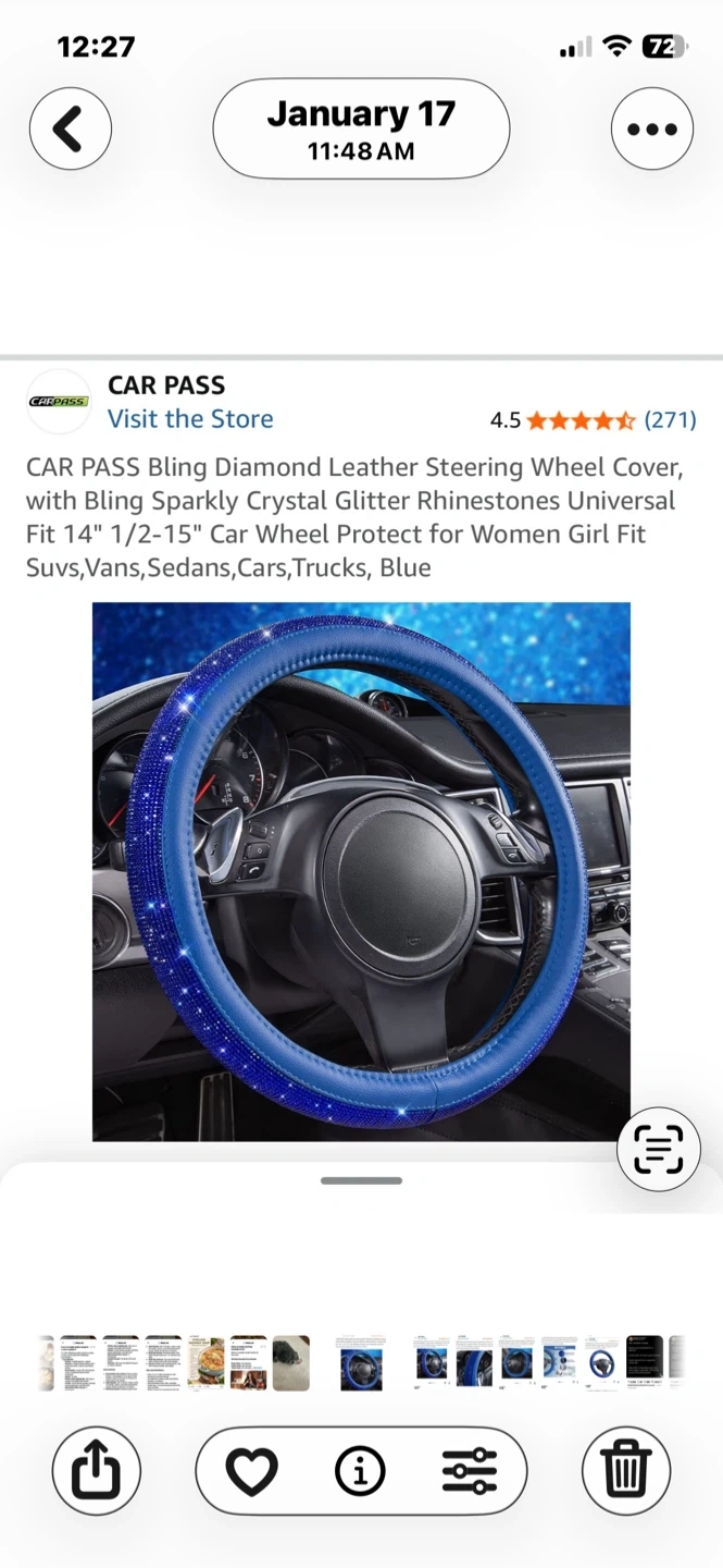 CAR PASS Bling Diamond Leather Steering Wheel Cover - Blue