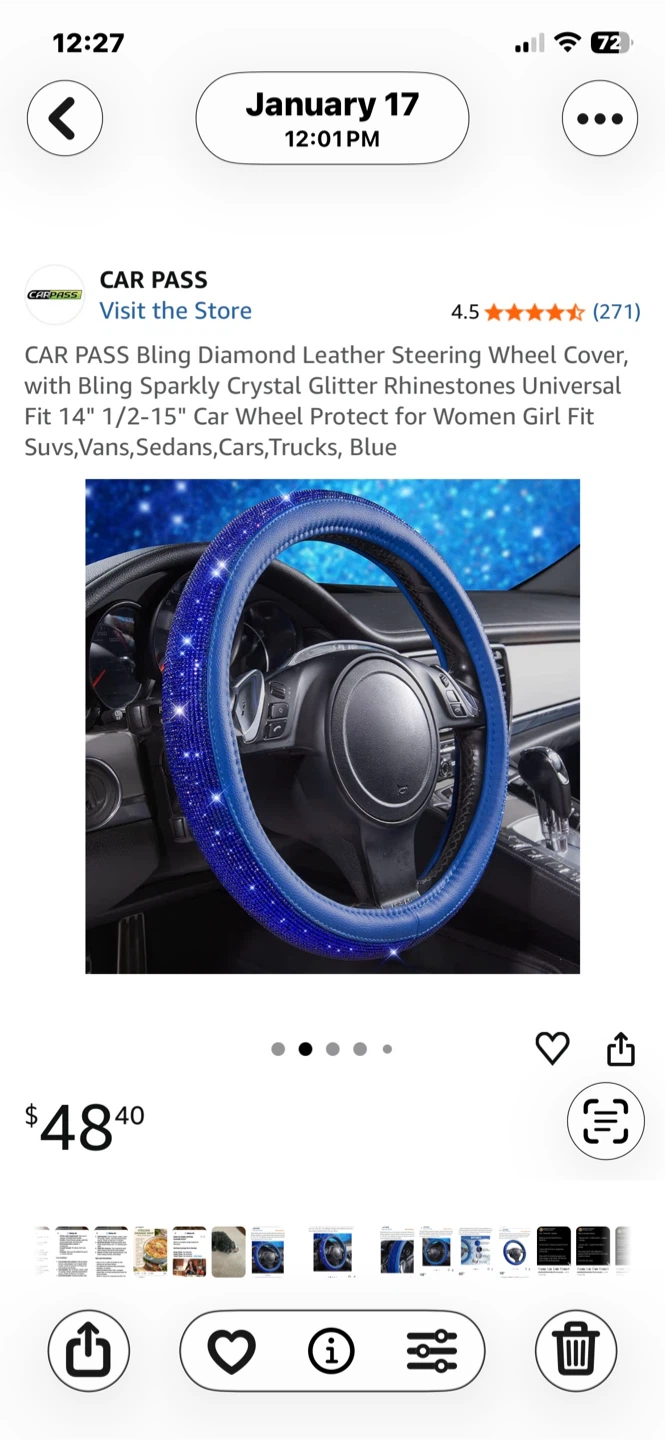 CAR PASS Bling Diamond Leather Steering Wheel Cover - Blue