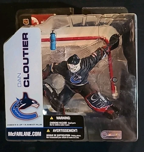 Unleash your passion for hockey with the McFarlane NHL Dan Cloutier Vancouver Canucks Series 5 Variant action figure. A must-have for collectors and fans alike, this piece captures the essence of the celebrated goaltender in vivid detail, complete with the iconic Canucks gear. Crafted with precision by McFarlane Toys in 2003, this figure stands as a testament to Cloutier's impact on the ice. It comes in its original unopened packaging, preserving its collectible value. Whether you're displaying it on your desk or shelf, this action figure is a striking nod to hockey history.