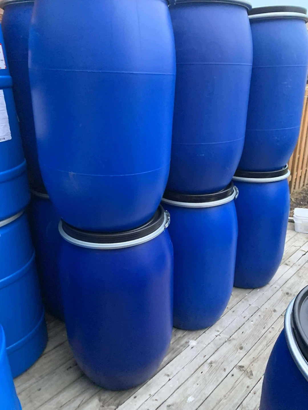 10Selling a blue plastic barrel. Great for storage or other projects!