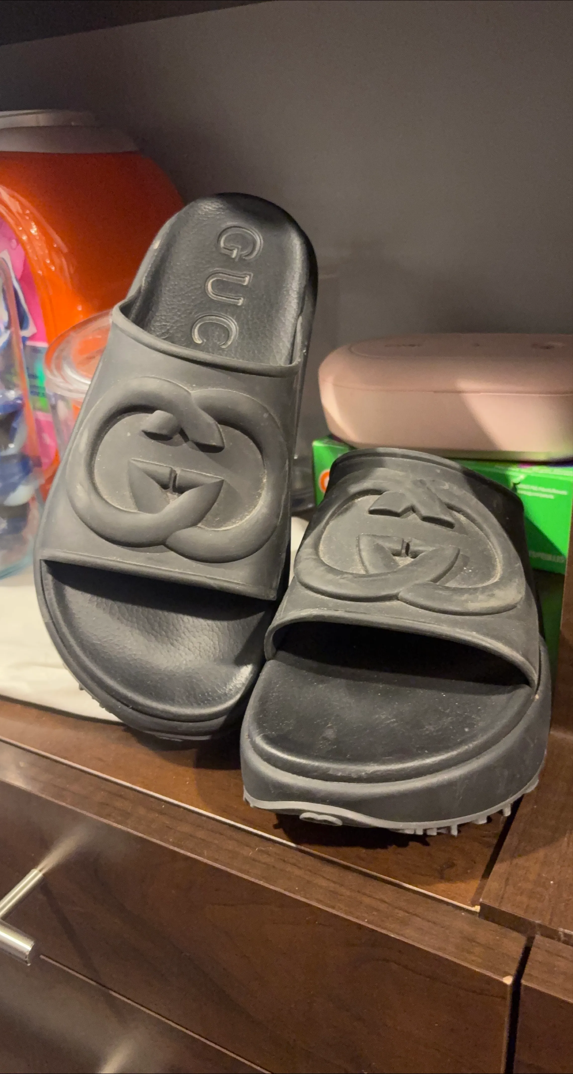 1 / 21 / 2Buy & SellAuthentic Gucci SlidesAuthentic Gucci Slides$90Slides in black, with a large logo on top. Chunky platform sole. Perfect for relaxing after a long day. * woman’s size 9.5 male’s size 8.0 *ConditionLike newWHERE TO MEETCheck LocationView MapSELLERverifiedBrunaEntertainment District43734 reviews6 chats·7 favorites·318 viewsSEND CHAT TO SELLERHi Bruna! I’m interested in your listing.Hi Bruna! I’m interested in your listing.Get the Karrot app to chatSign In to chat