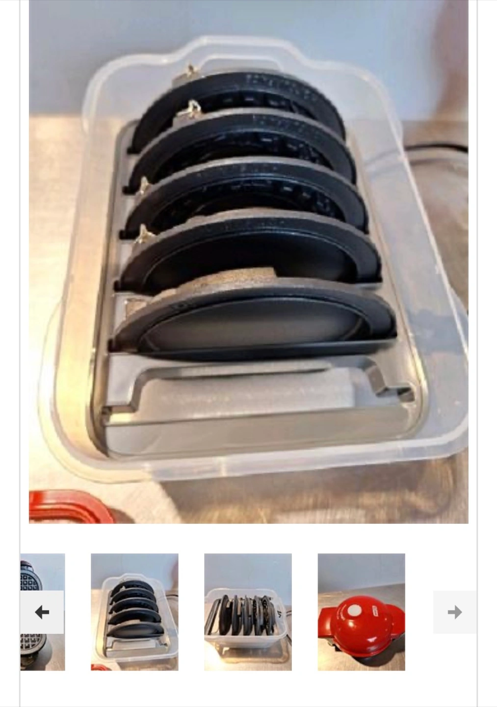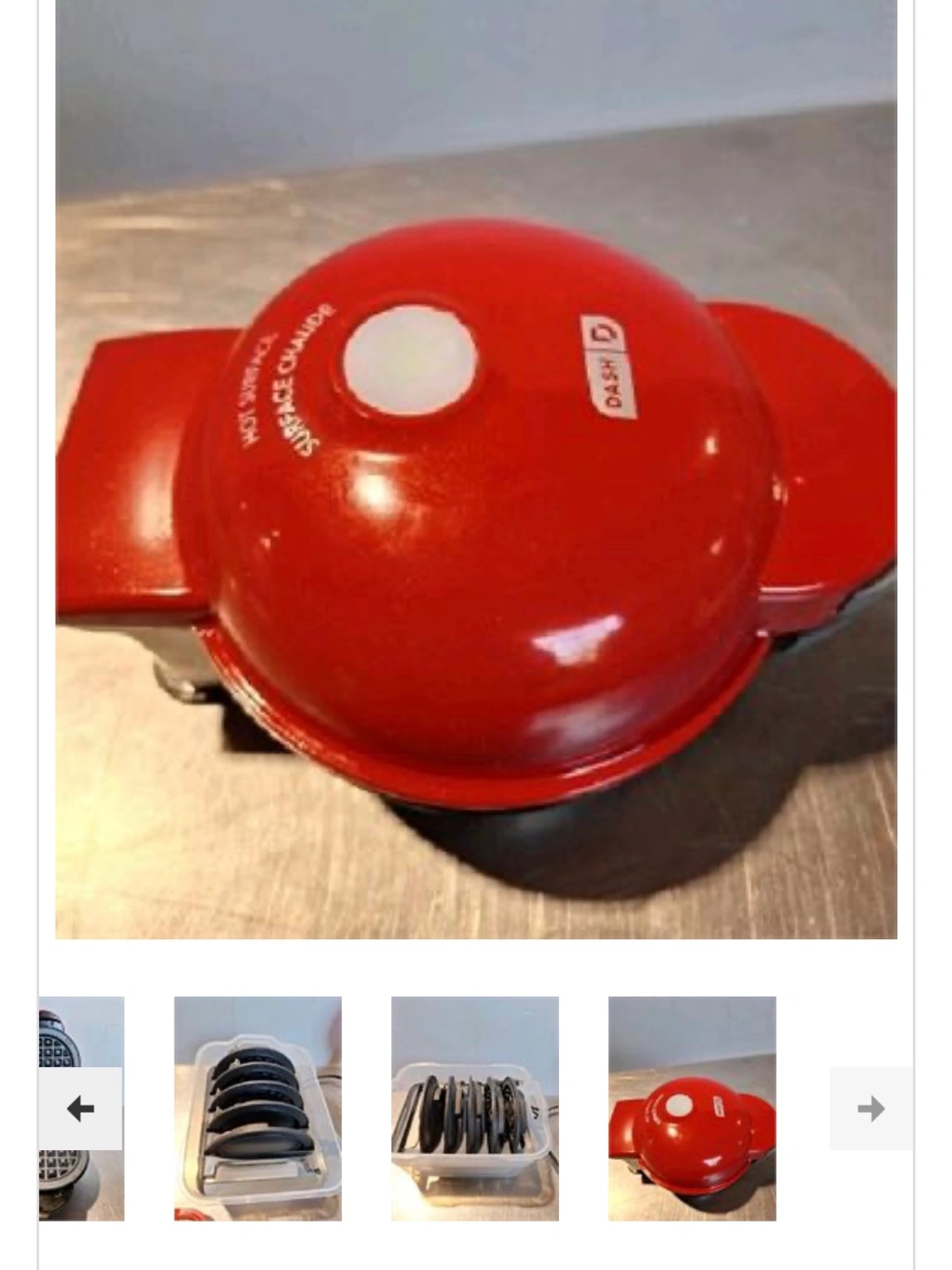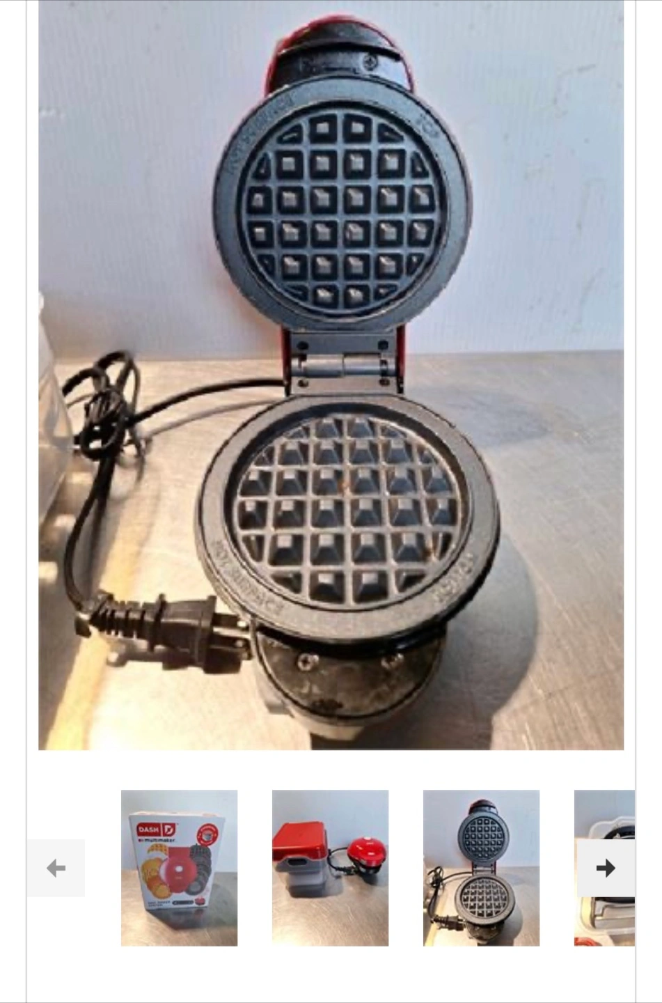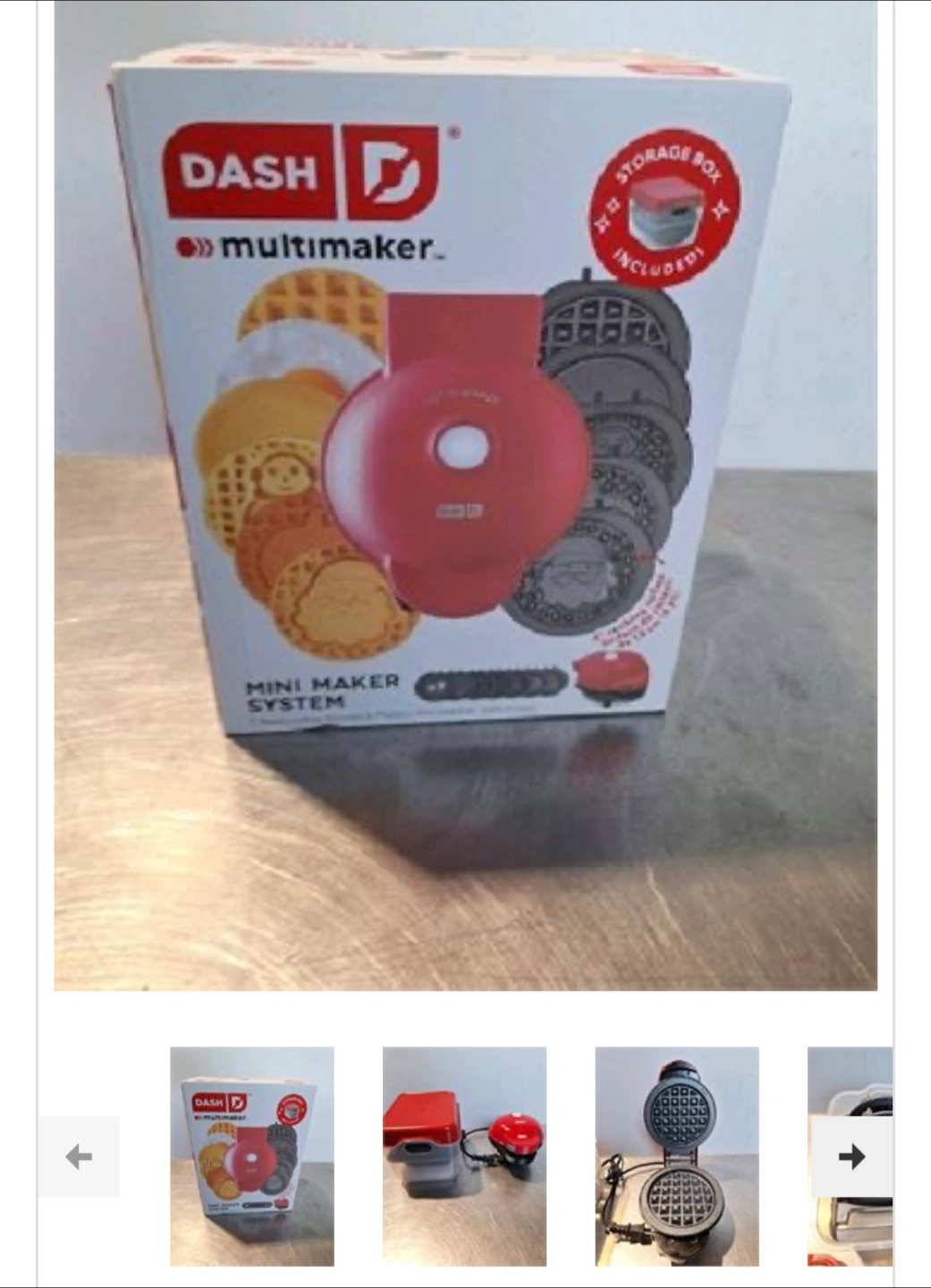 A bright red mini maker. Comes with many different plates, storage container, and cord. Creating delicious snacks is a great way to relax and unwind at the end of a long day. Amazon price is 61$ +tax I m selling only $50.. Check other listings to find more crazy price