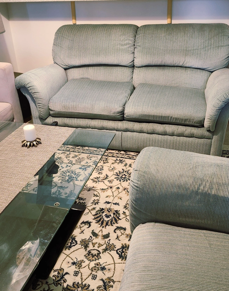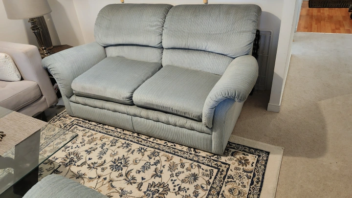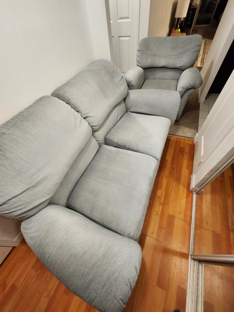 311A comfortable sofa set includes 2 seat sofa ( Love-seat) and an Armchair, in a neutral Light Tiffany Green colour. The set is suitable for all living spaces and would be a great addition to any home to cozy up on. **They have been cleane, becme like new and ready to move ** 《Moving Sale》 It's clean and so comfort. love-seat $ 180 and chair $130 Dimensions: 📏 Loveseater Sofa: Length: 66 in Width (depth): 35 in Height: 32 in 📏 Armchair: Length: 40 in Width (depth): 35 in Height: 32 in pick up location is near North York Centre. or Yonge and Sheppard