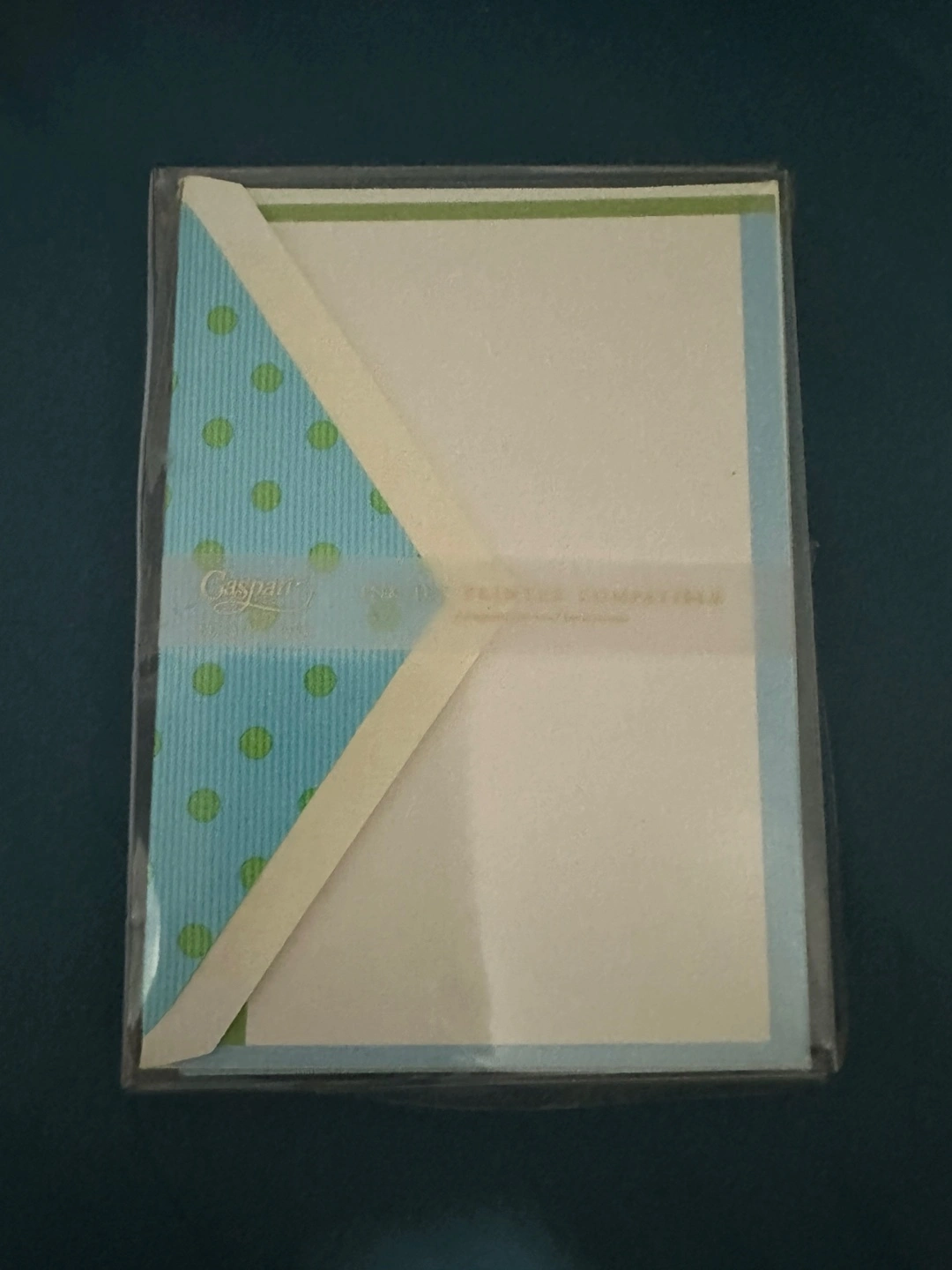 Stationery set with a dotted pattern inside envelope. Envelopes and writing paper included.