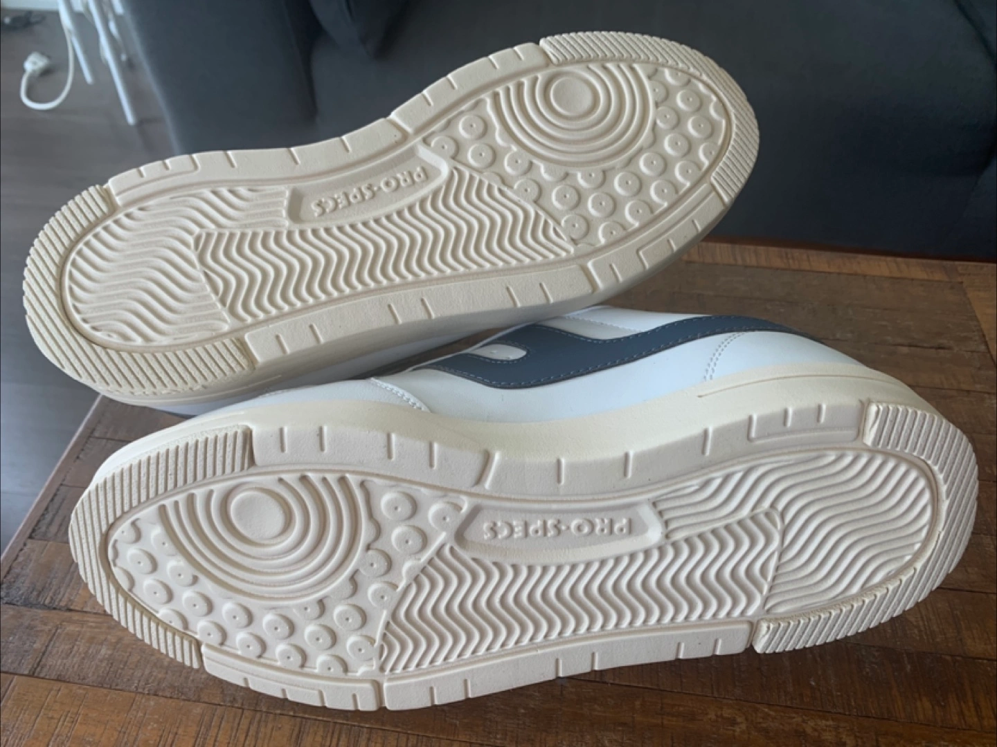 Price is per pair. Made in Korea. The sneakers are white with blue accent (280 cm/10) or red accent (275 cm/9.5) Lace-up closure. Classic, casual, retro design.
