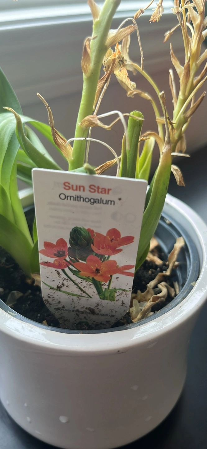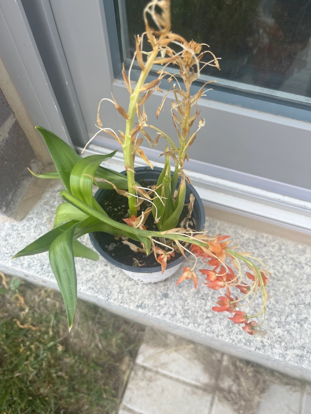 A potted flower plant. Features long green leaves. Shows orange flowers. Placing this plant in your home can create a tranquil atmosphere.