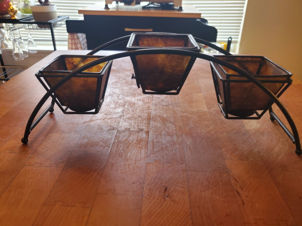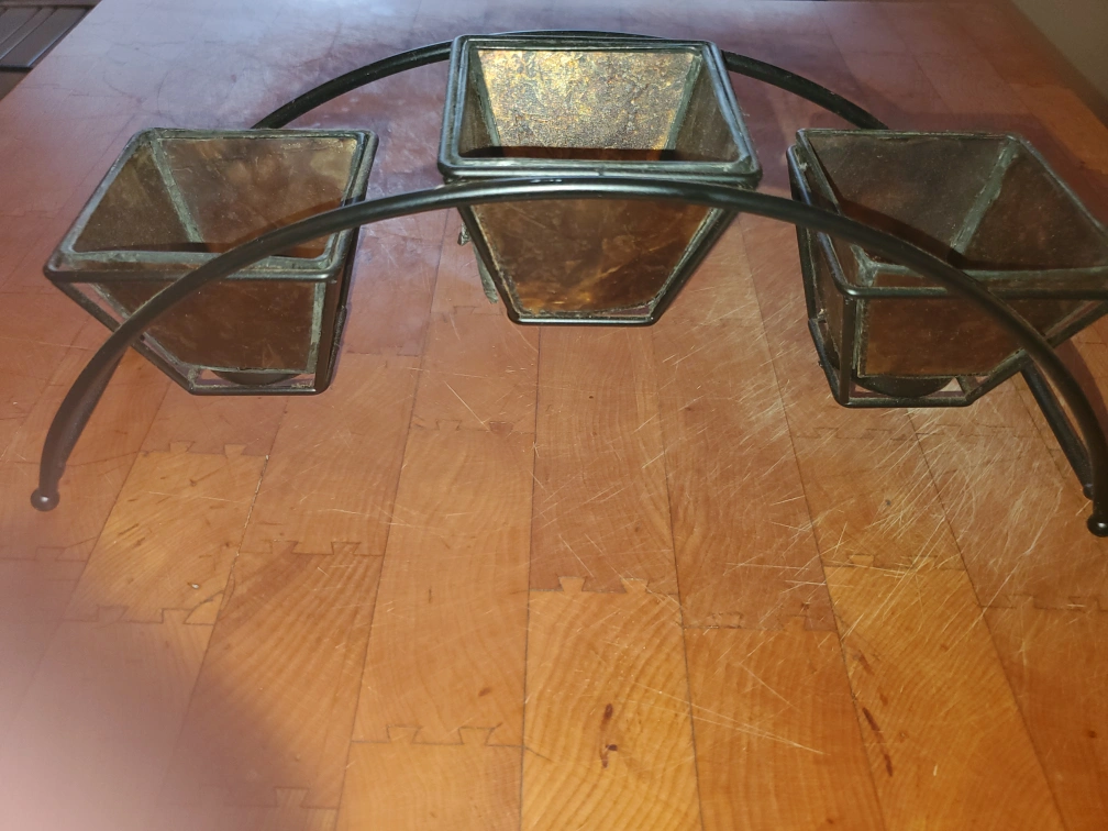 brand new never used sticker still inside Candle holder with curved metal frame.