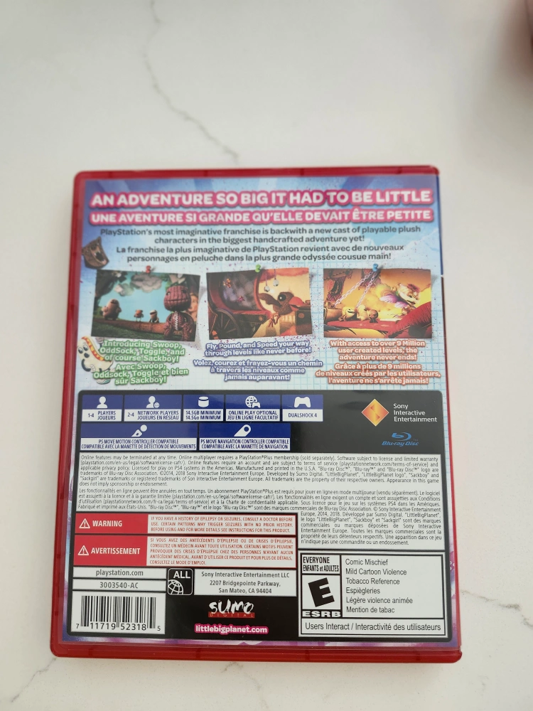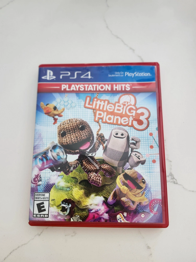 Little Big Planet 3 for the Playstation 4. The game comes in a red case. The disk includes colorful images. This game will give you hours of entertainment when you want to unwind.