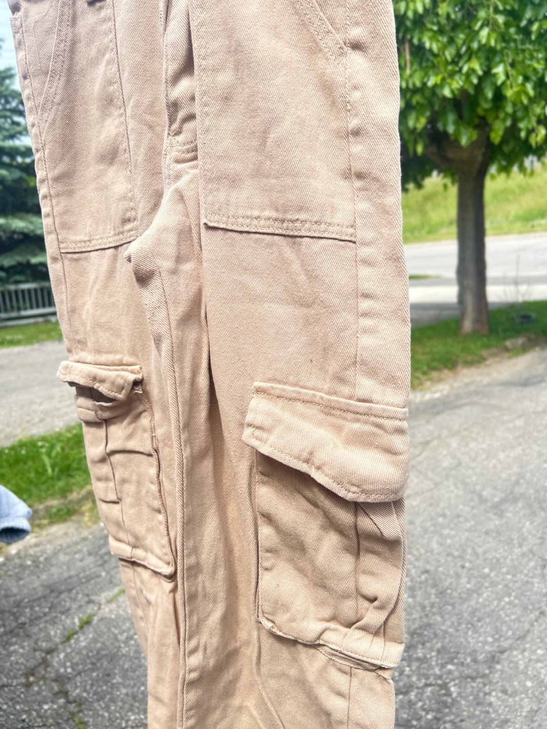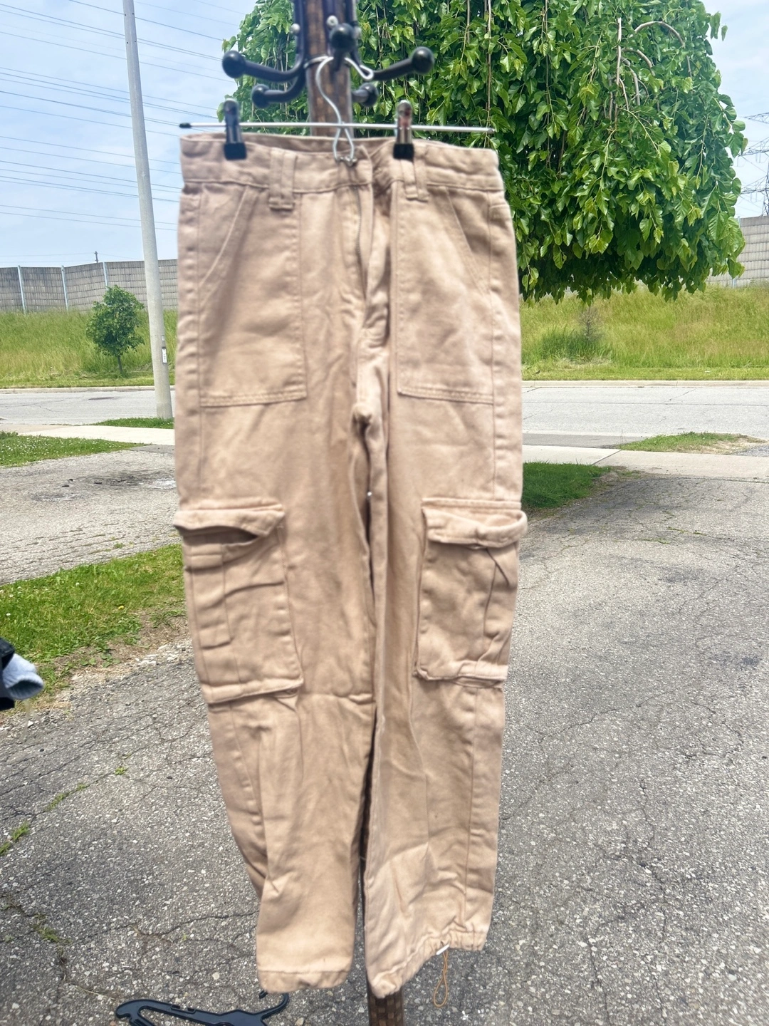 196I am selling these cargo pants. They have multiple pockets. The pants feature a drawstring at the ankles. A perfect fit for a calm walk.