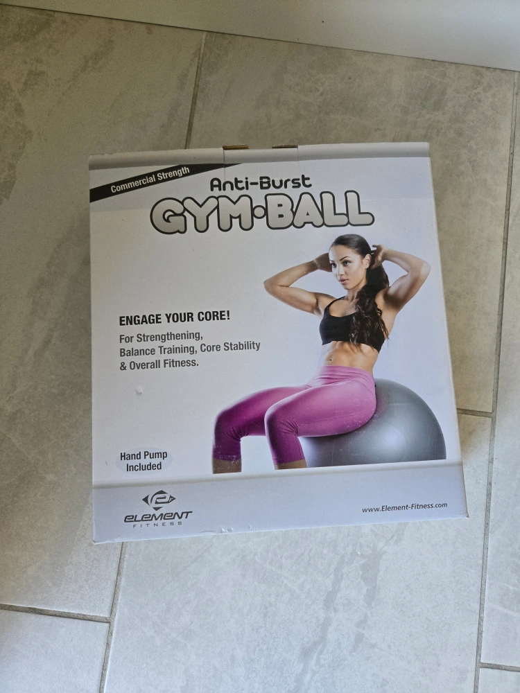 A great item for home or professional use. The ball is in its original packaging. Helps with health, wellness, balance, stability, core strength, flexibility and posture.