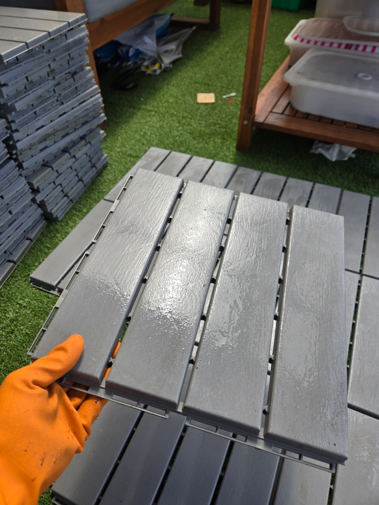 They were previously pressure washed to remove some of the green algea and dirt that was caked onto them.
