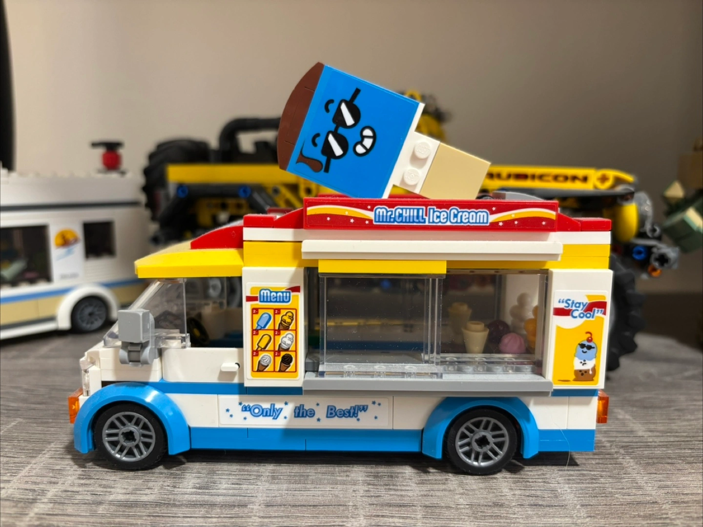 Collection of LEGO creations. Includes a Jeep Rubicon ($50) ice cream truck ($15) campervan ($15) and The Child (Grogu) figure ($60). All come with original boxes