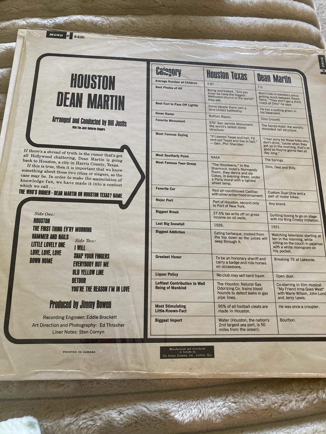 Record features several black and white images of Dean Martin. It is in its original packaging. An excellent addition to any collection for those who love classic music. Has rare etching in the centre of album.