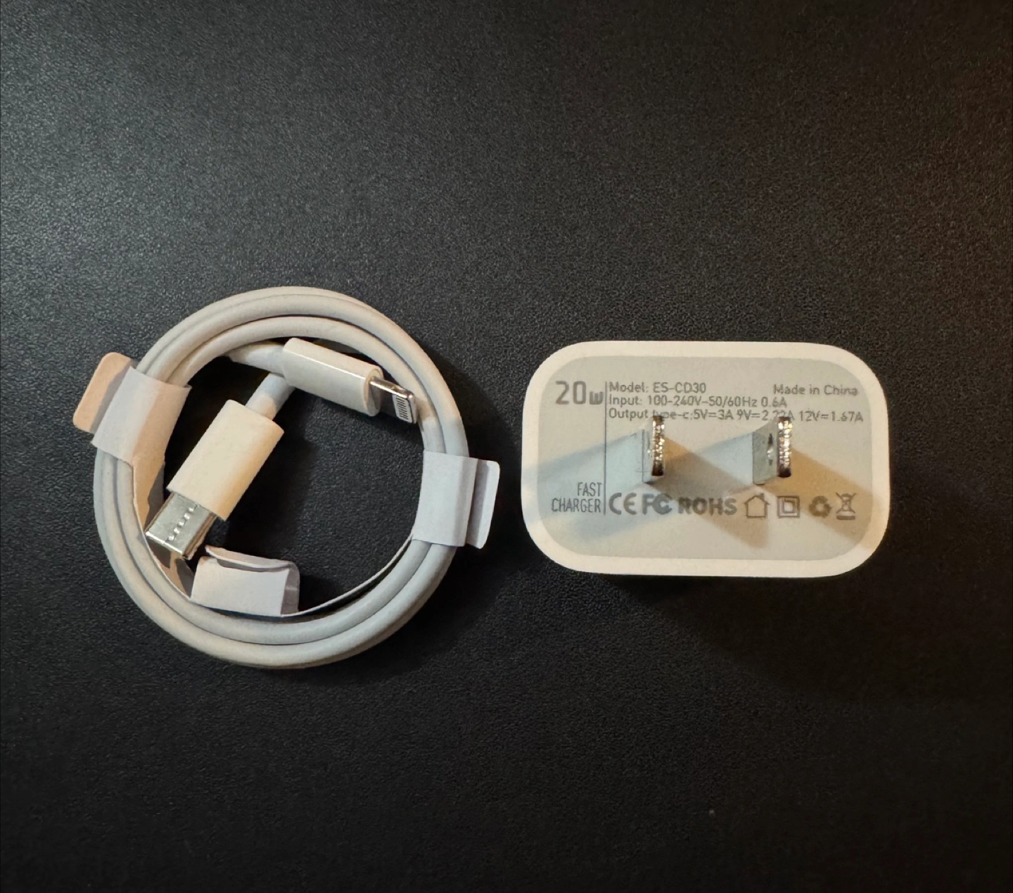 Includes a USB-C charging cable and a charging block. This set is perfect for a quick charge.