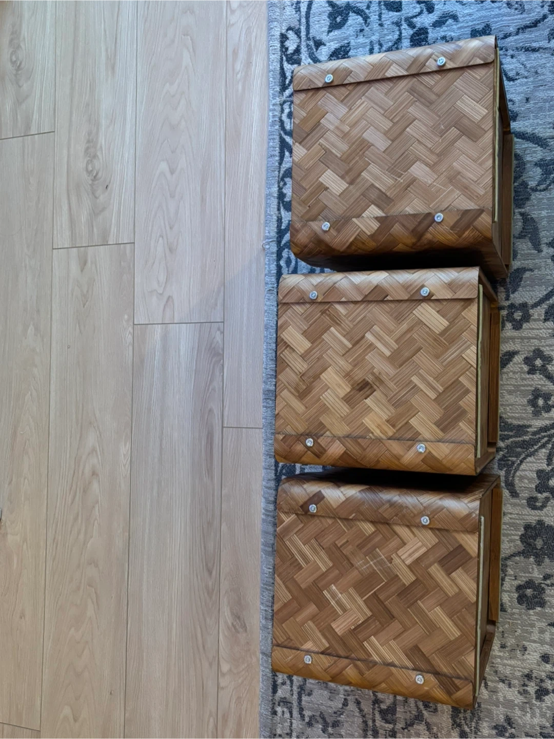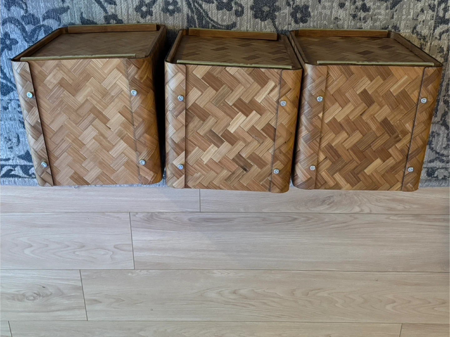 Selling a set of three IKEA BULLIG boxes. They are bamboo/brown and measure 32x35x33 cm (12 ½x13 ¾x13 "). Perfect for storage and organization!
