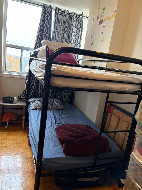 Selling a used metal bunk bed frame, perfect for kids or a guest room! It's a twin over twin size. The frame is sturdy and in good condition.