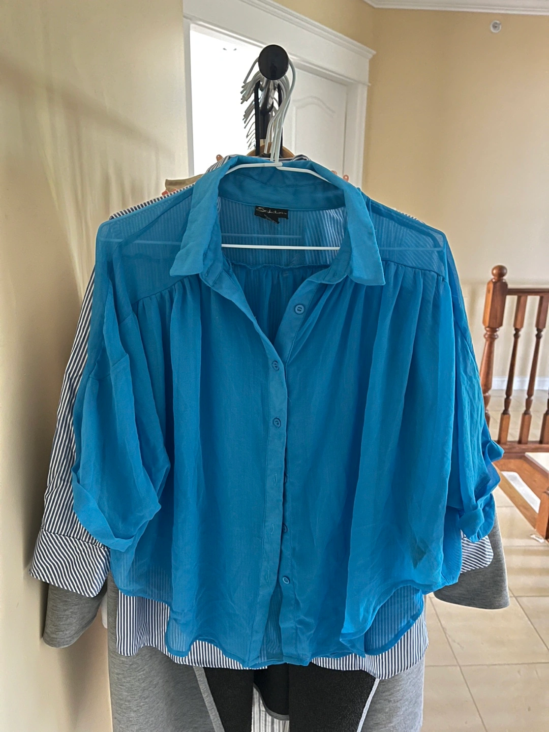 Bright blue sheer blouse