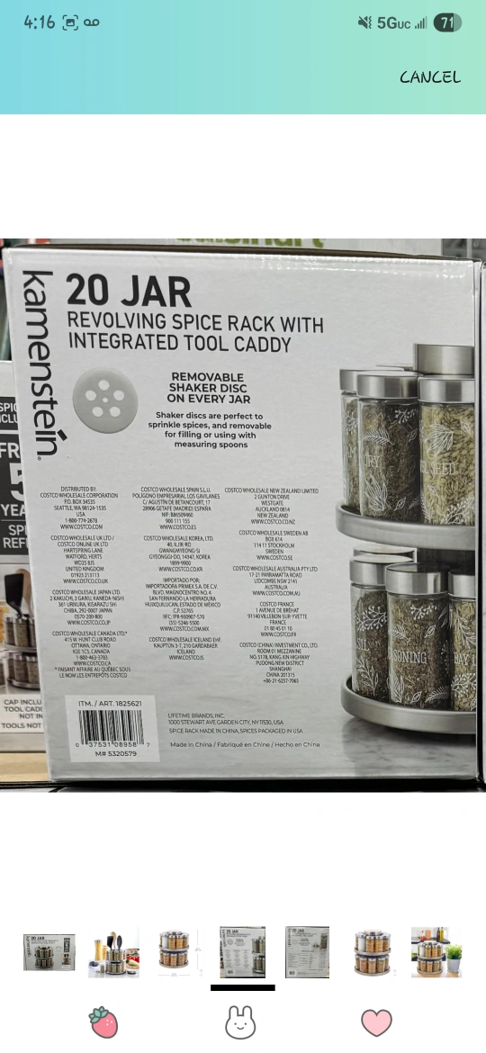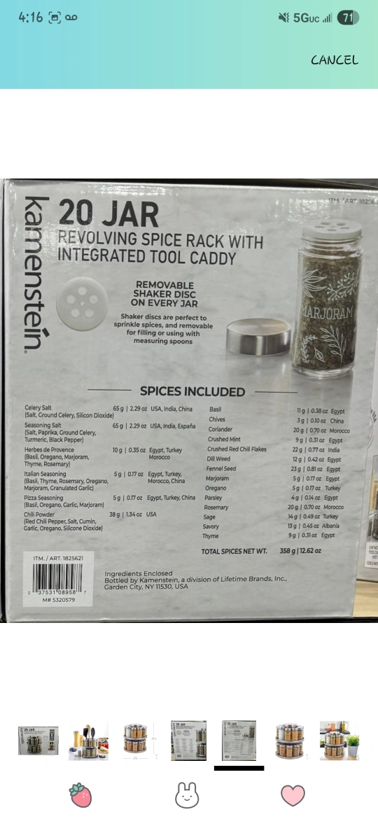 Spice rack with multiple jars. It comes with a rotating rack and a tool caddy. This spice rack is a perfect addition to any kitchen, providing a calming sense of organization to your spice collection.