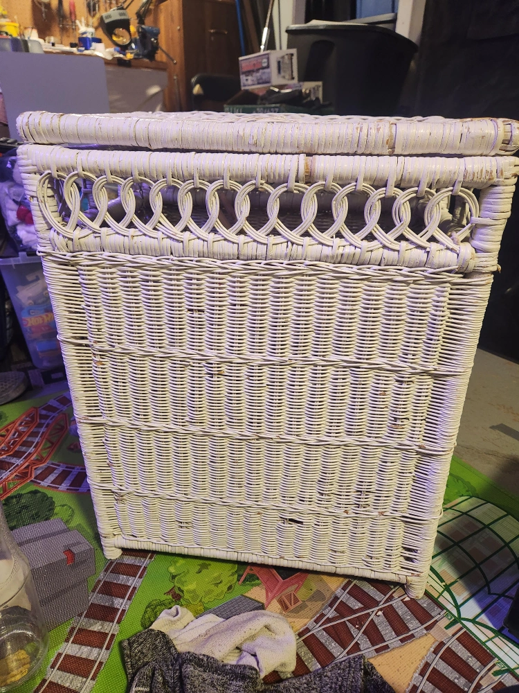 This charming, used wicker storage chest offers both style and functionality, perfect for adding a touch of vintage elegance to any room. Its durable construction makes it ideal for storing blankets, toys, or other household items, while the intricate wicker design enhance its esthetic appeal. Good condition showing its age.