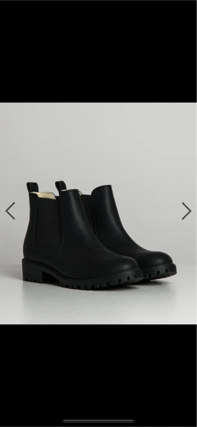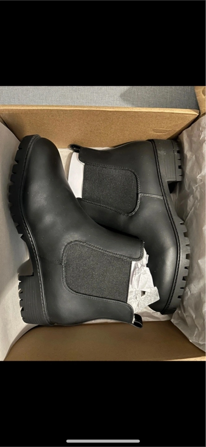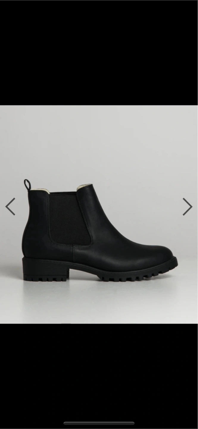 These black ankle boots look sturdy. Featuring a chunky sole, elasticated side panels and a pull tab