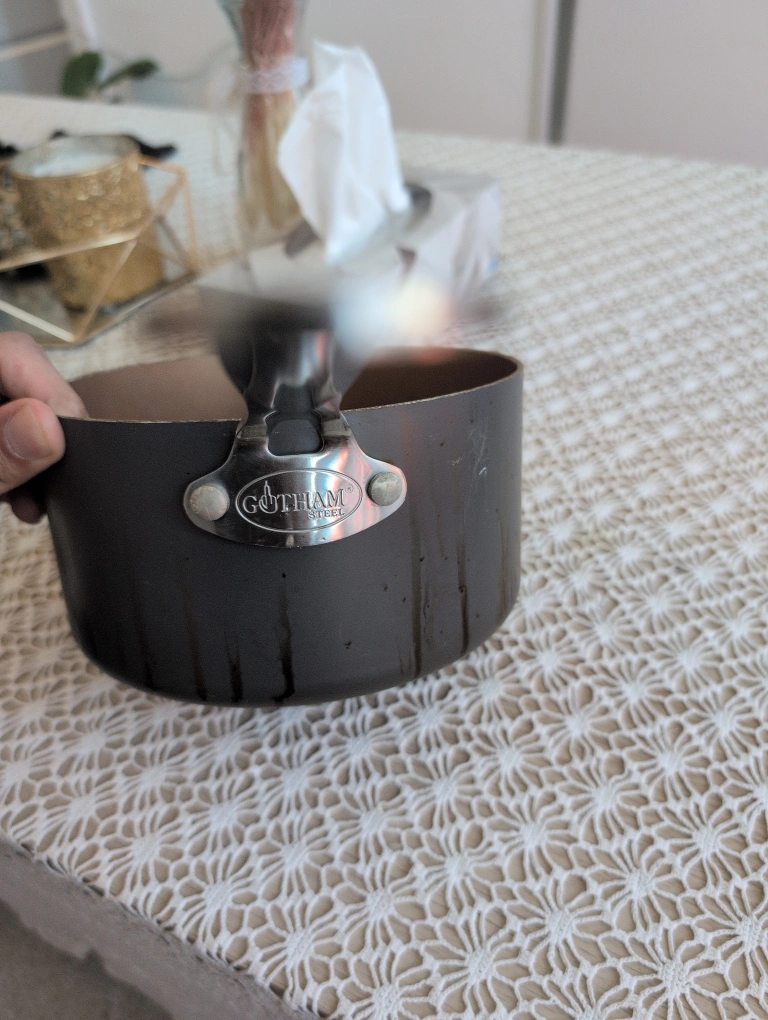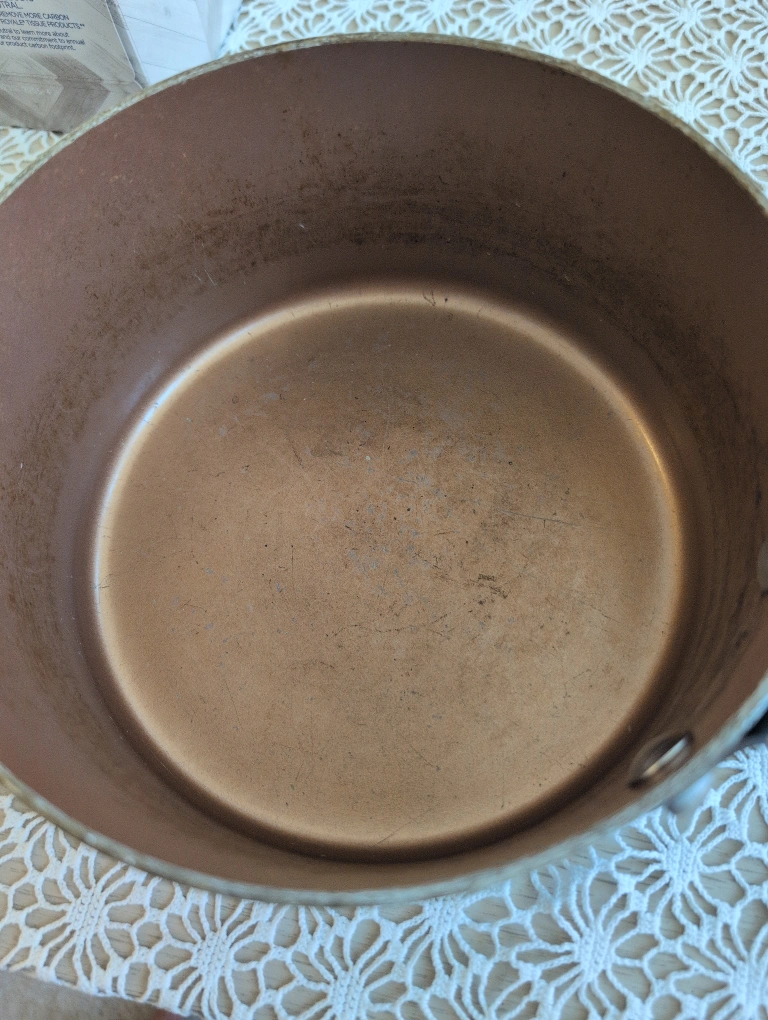 1000+A sturdy pot in a beautiful copper colour. It has a long, metal handle. Perfect for making a delicious cup of tea. has wear and tear signs...