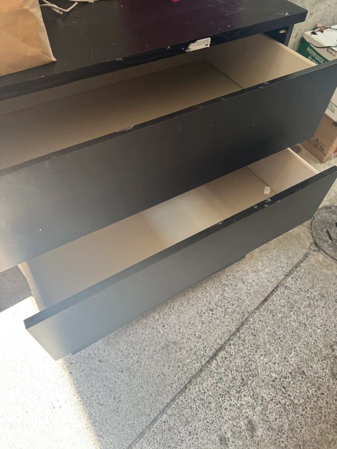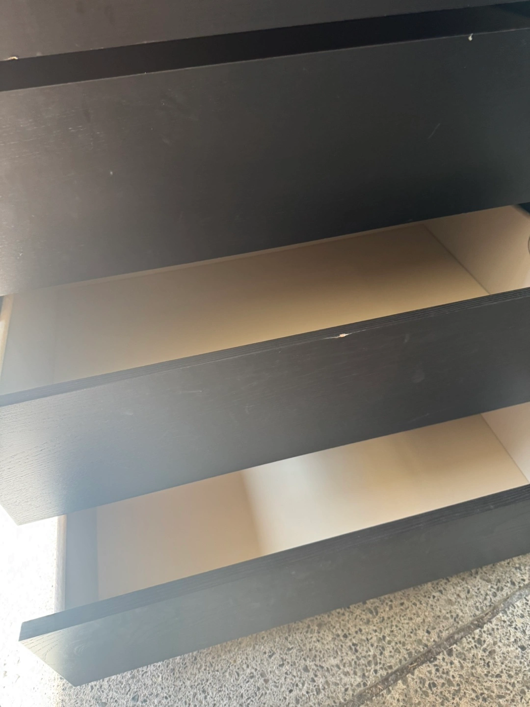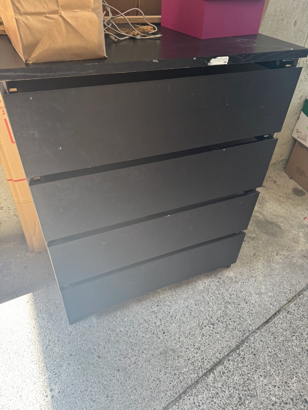 Black dresser with four drawers. The drawers are rectangular in shape. It is a great piece to organize your belongings and bring some peace of mind.