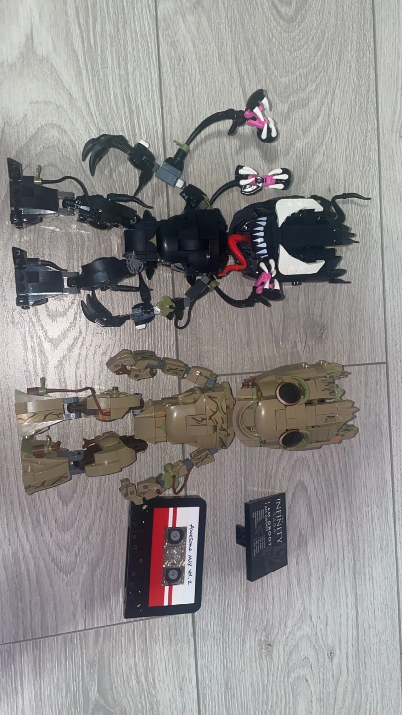 202EACH 20$ each FULLY COMPLETE I am selling a couple of Marvel LEGO figures. They are a Venom figure and a Groot figure. The Groot figure includes a mixtape. Building these figures can be quite relaxing.