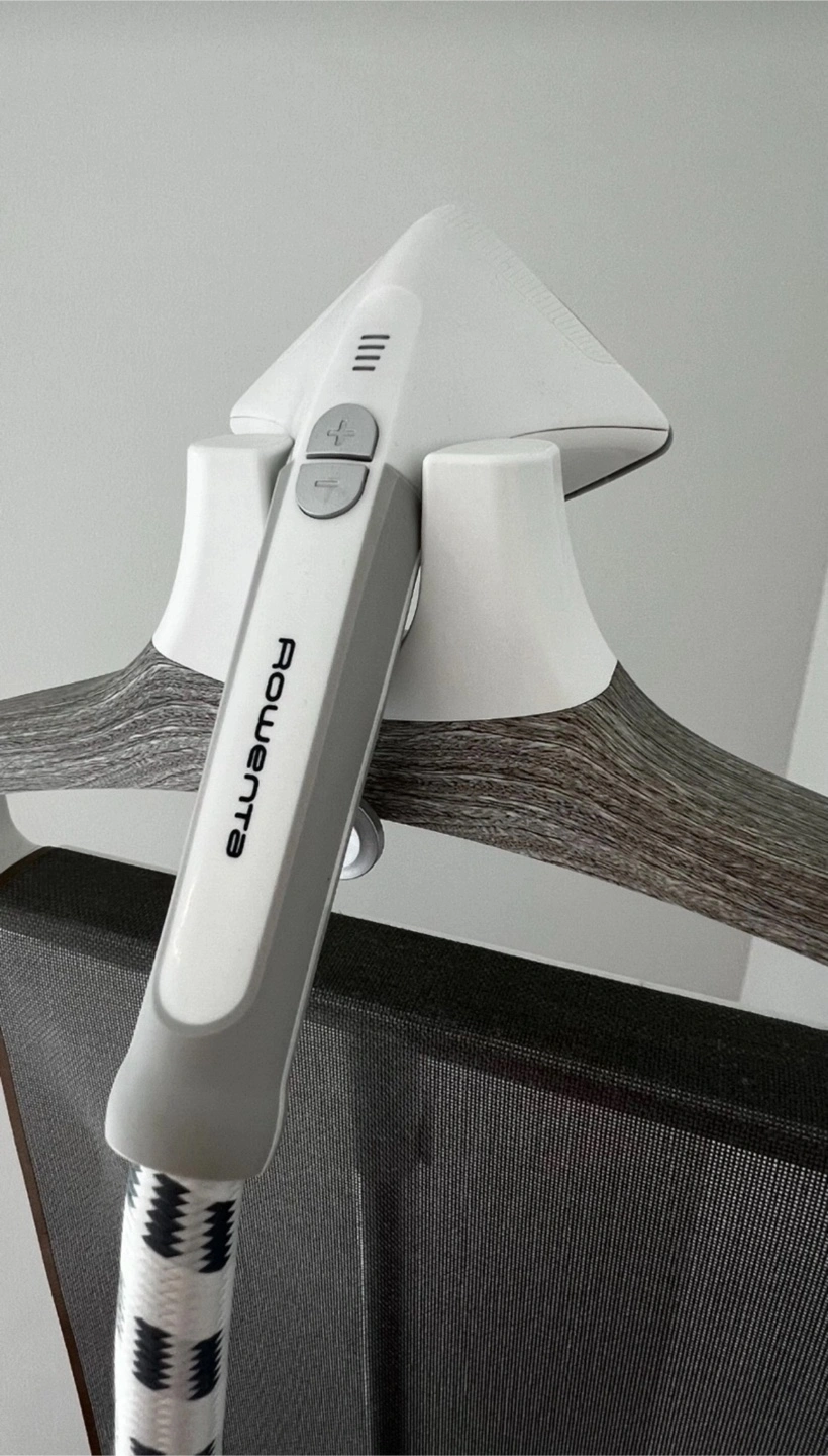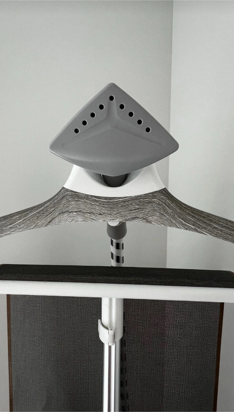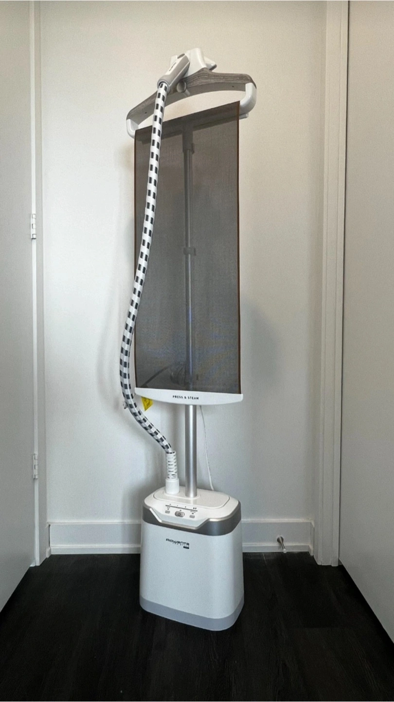 Vertical steam iron with press screen, with very few months of use. Includes a heat resistant steamer glove.