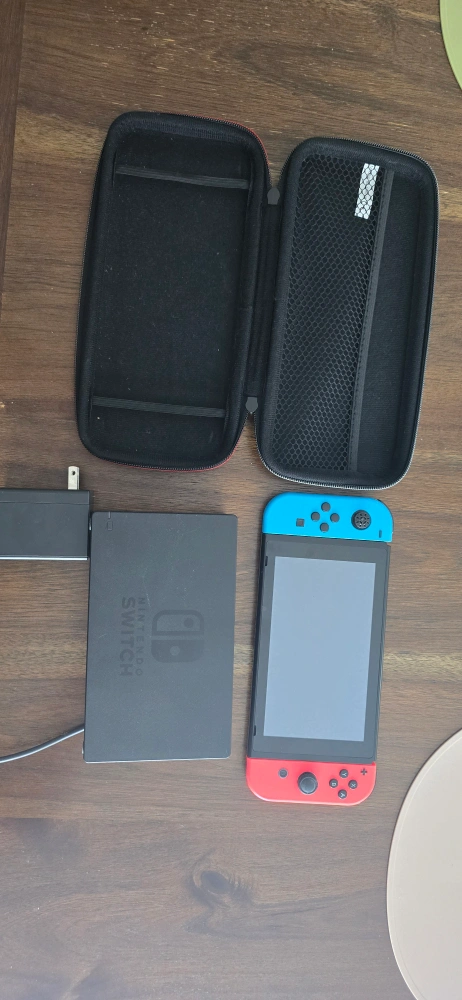 10come with the nintendo switch, dock, carrying case and charger. blue joyvon missing rubber piece for joystick