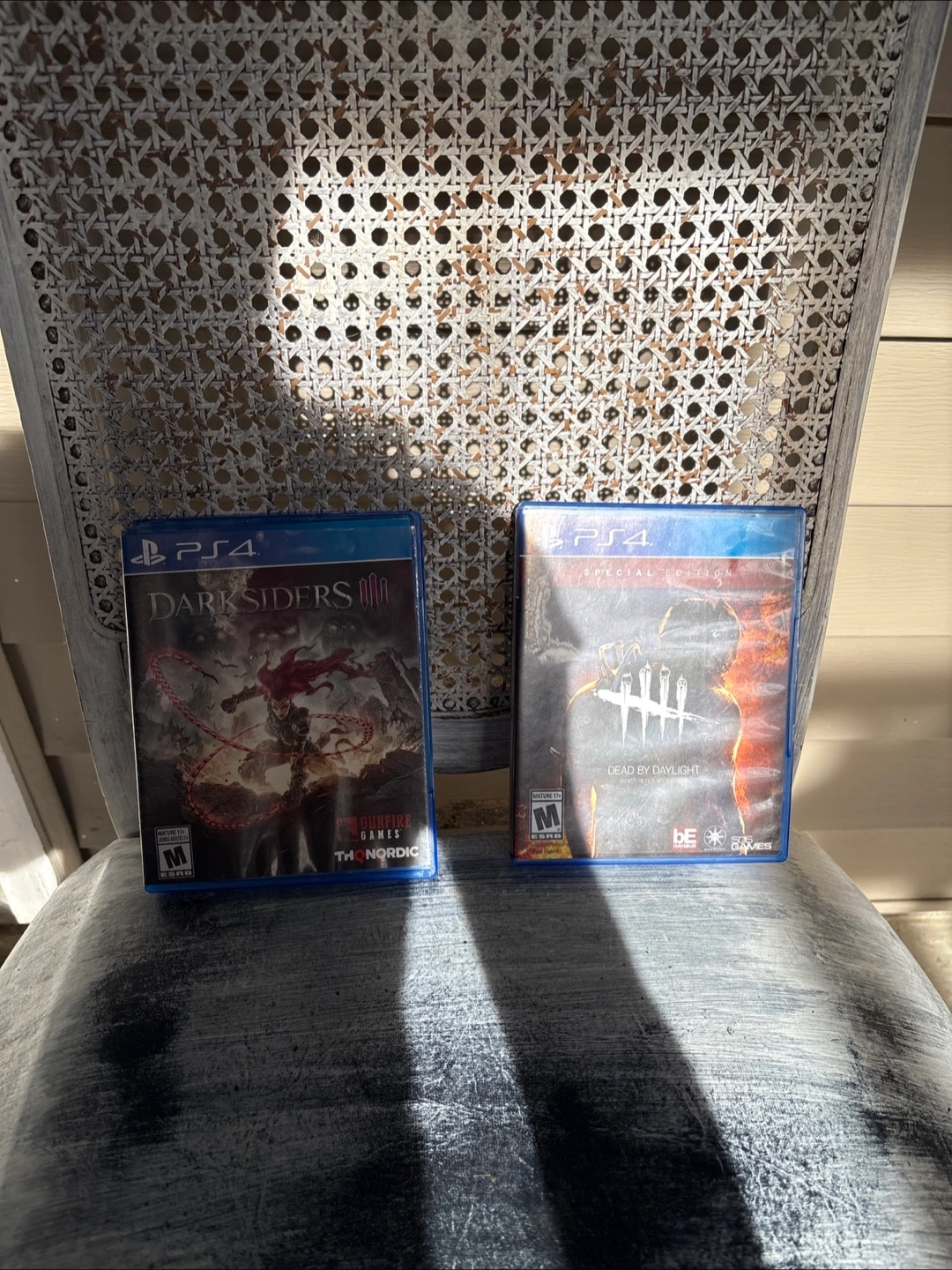 Offering a couple of PS4 video games. One is a special edition of Dead by Daylight, and the other is Darksiders III. Playing these games would be a nice way to unwind and de-stress after a long day.