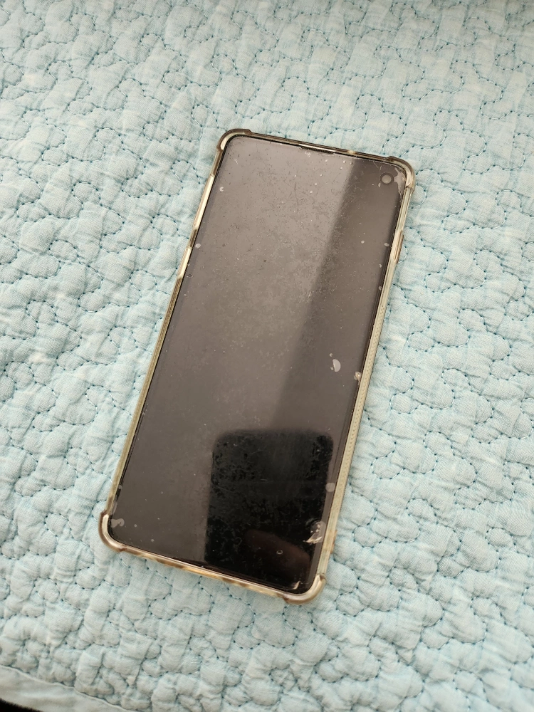 used with Screen protector on both sides. small crack on the right top corner(see photo).