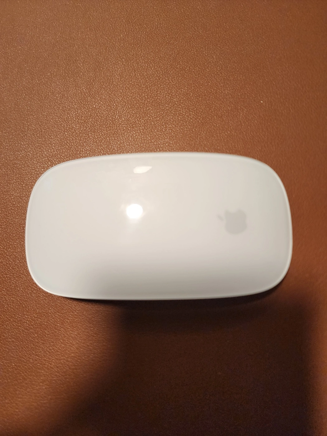 Clean, fully functional Apple Magic Mouse (Gen 1). Minimalist design, multi-touch surface, classic Apple aesthetic. Works via Bluetooth — no cables, no clutter.