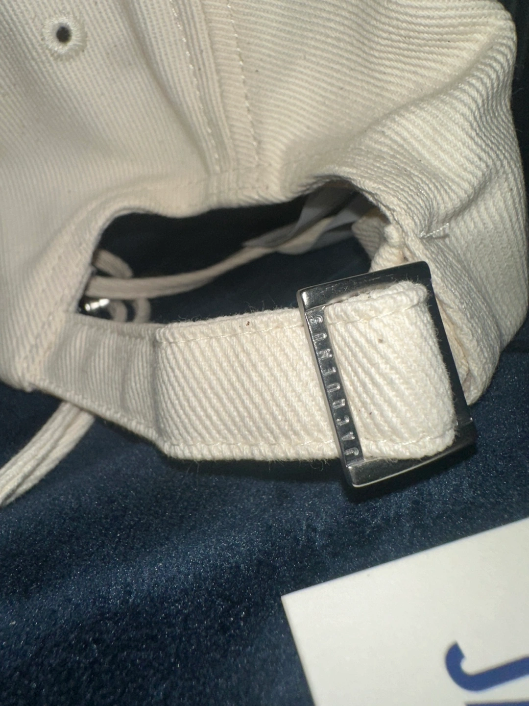 A stylish cap in white. Features the brand's logo. Made of a durable material. Adjusts for the perfect fit, it is a great item to keep the sun out of your eyes on a bright day.