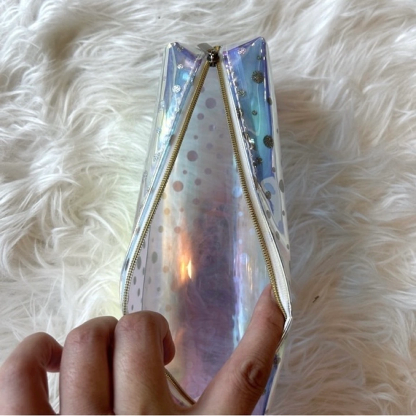 New, without tags! Iridescent semitransparent makeup brush bag. Polka dot pattern. Pencil case style. Zipper on top. New, never used. Cross posted. Winnipeg - Pick up only (Located 2 blocks west of Polo Park). Shipping options available through other platforms message me for details.