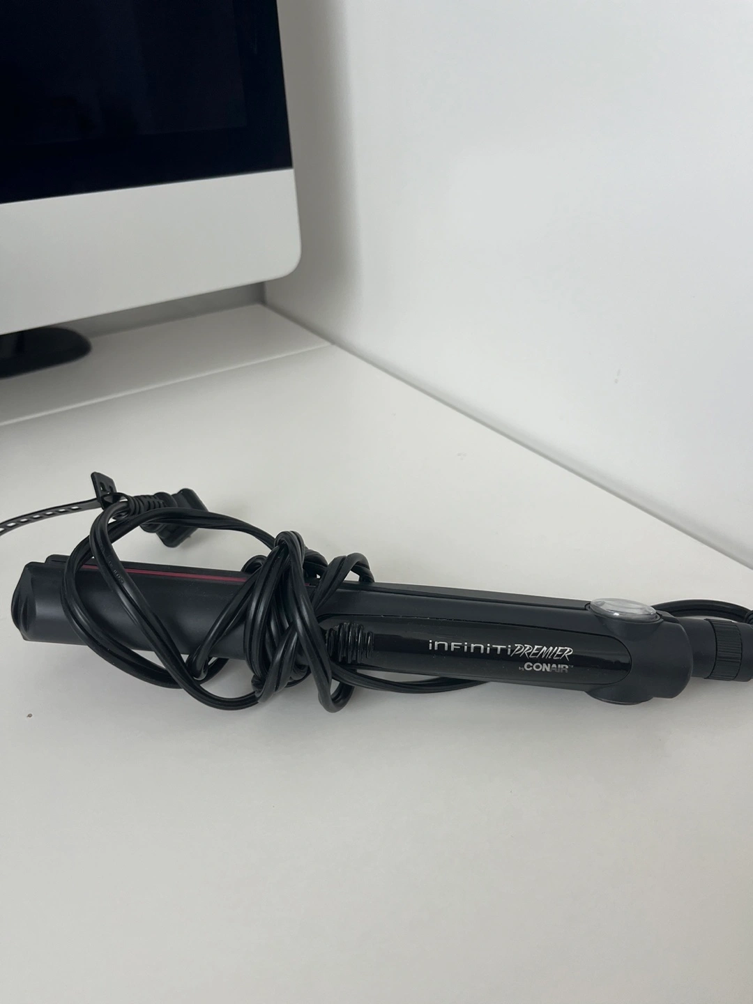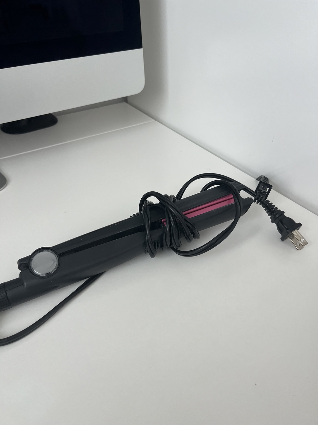 A hair straightener with a black finish. Features a long cord. Perfect for styling hair easily after a long day.