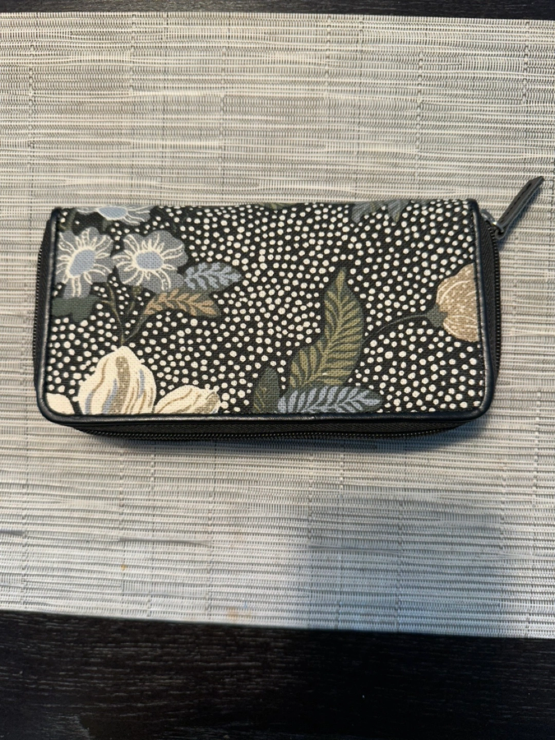 The wallet features a beautiful floral print with a black zipper. Offers several compartments for organization. Ideal for keeping your everyday essentials in one place, it’s perfect for those moments of calm.