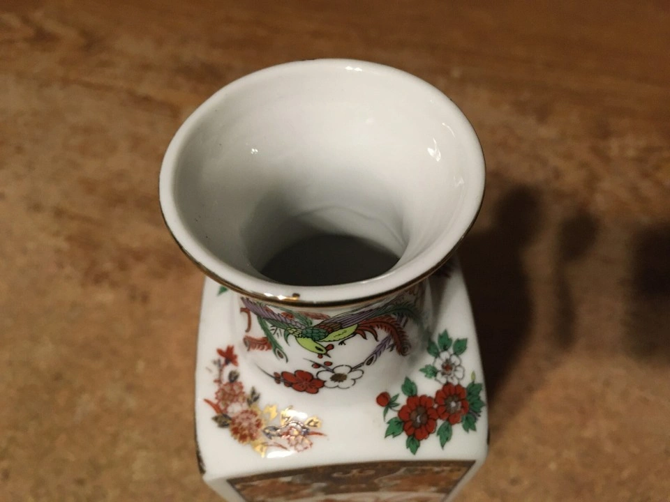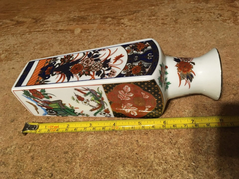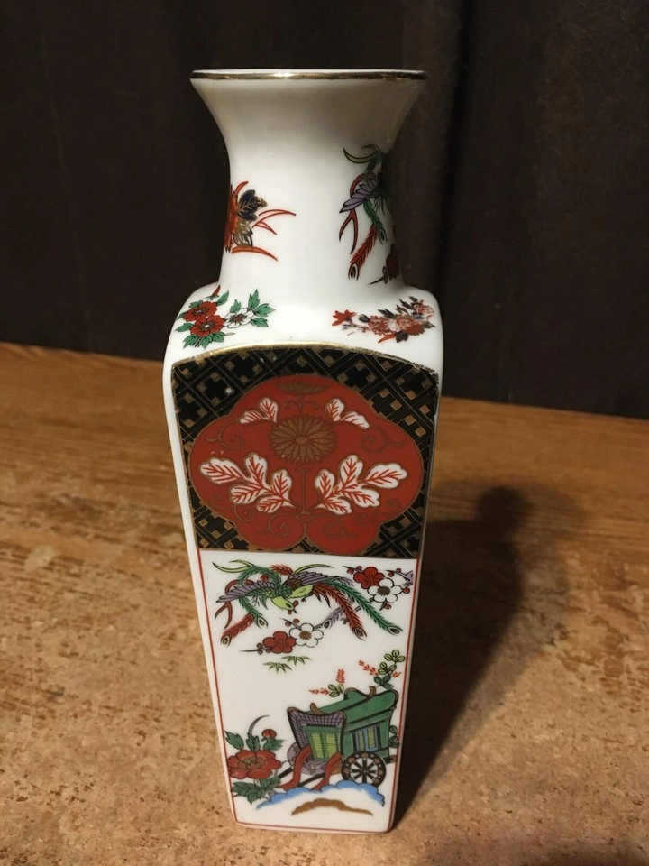 Decorative Japanese White Floral Vase bird wagon stage coach 8"