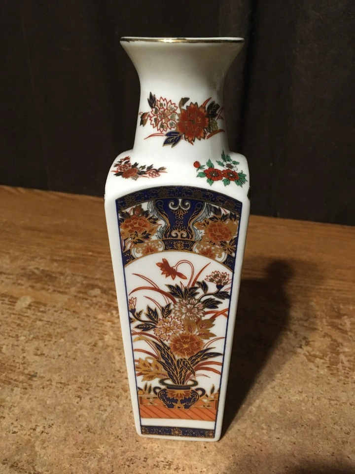 Lovely white vase. Features a variety of colorful floral designs. Gold trim around the top. Makes a great accent piece in any room, creating a peaceful vibe in your home. good condition, could be a Takahashi San Francisco. pick up at house