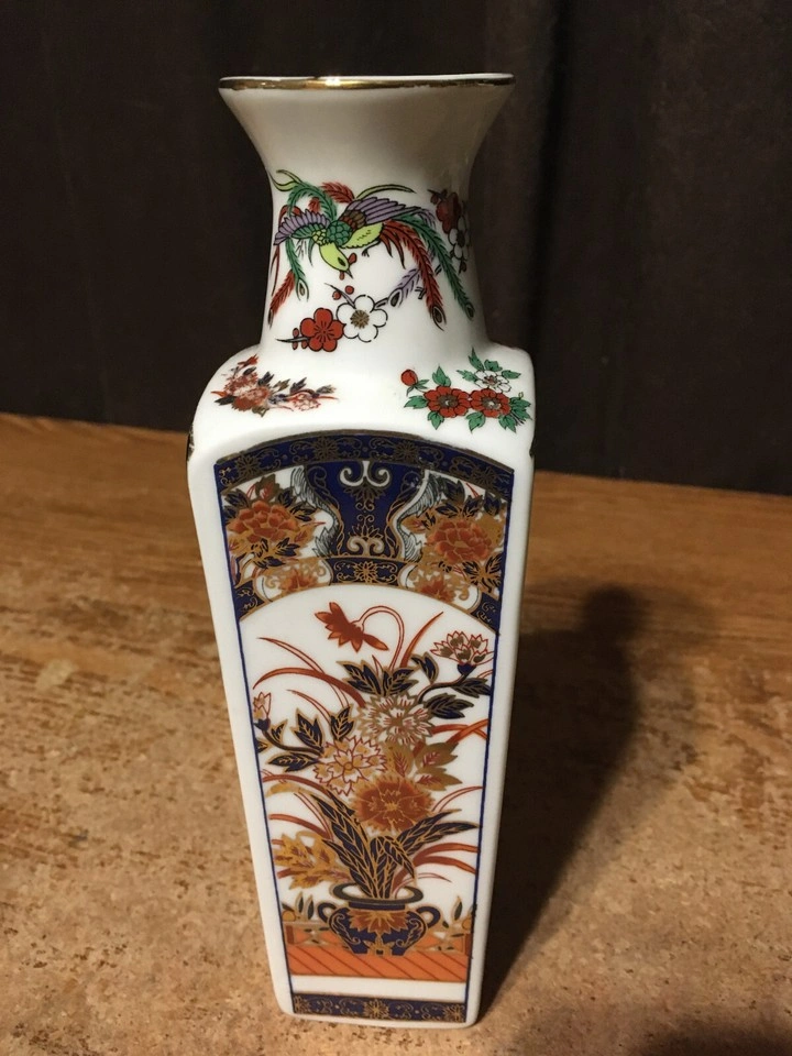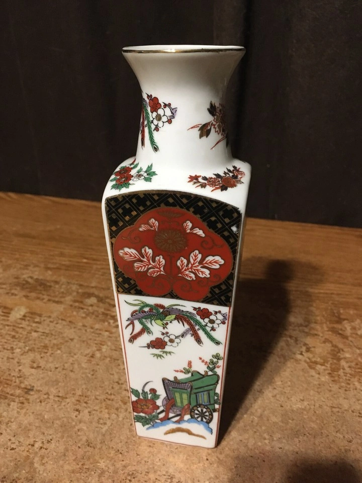 Decorative Japanese White Floral Vase bird wagon stage coach 8"