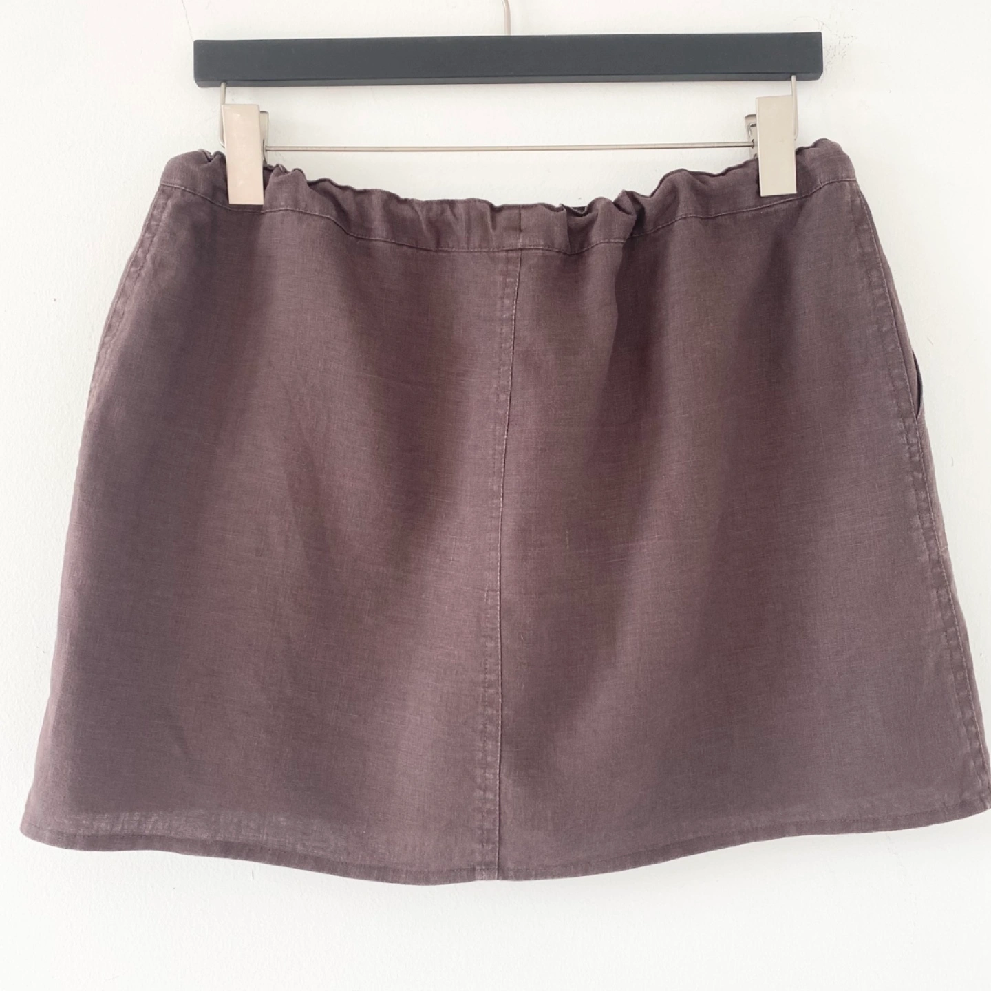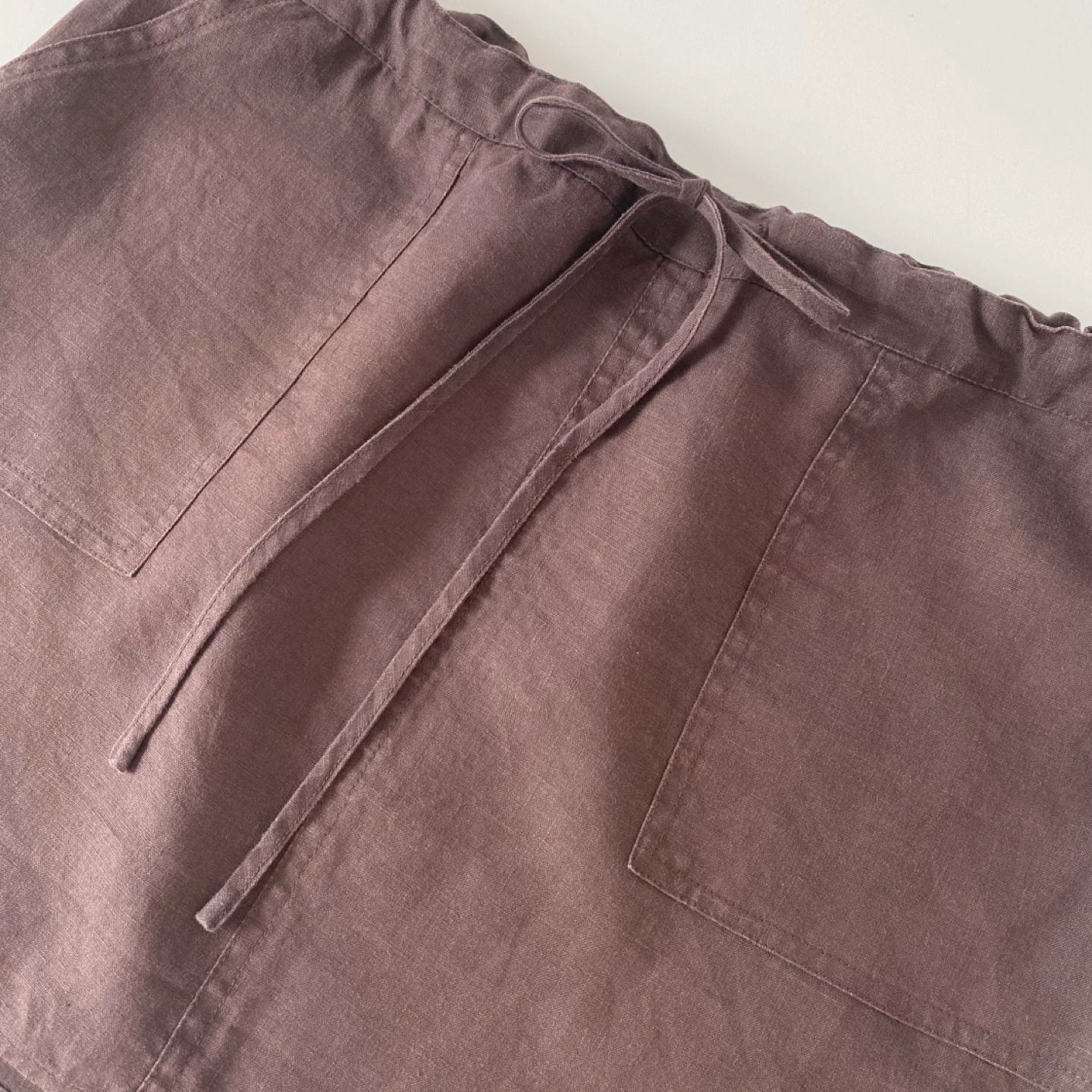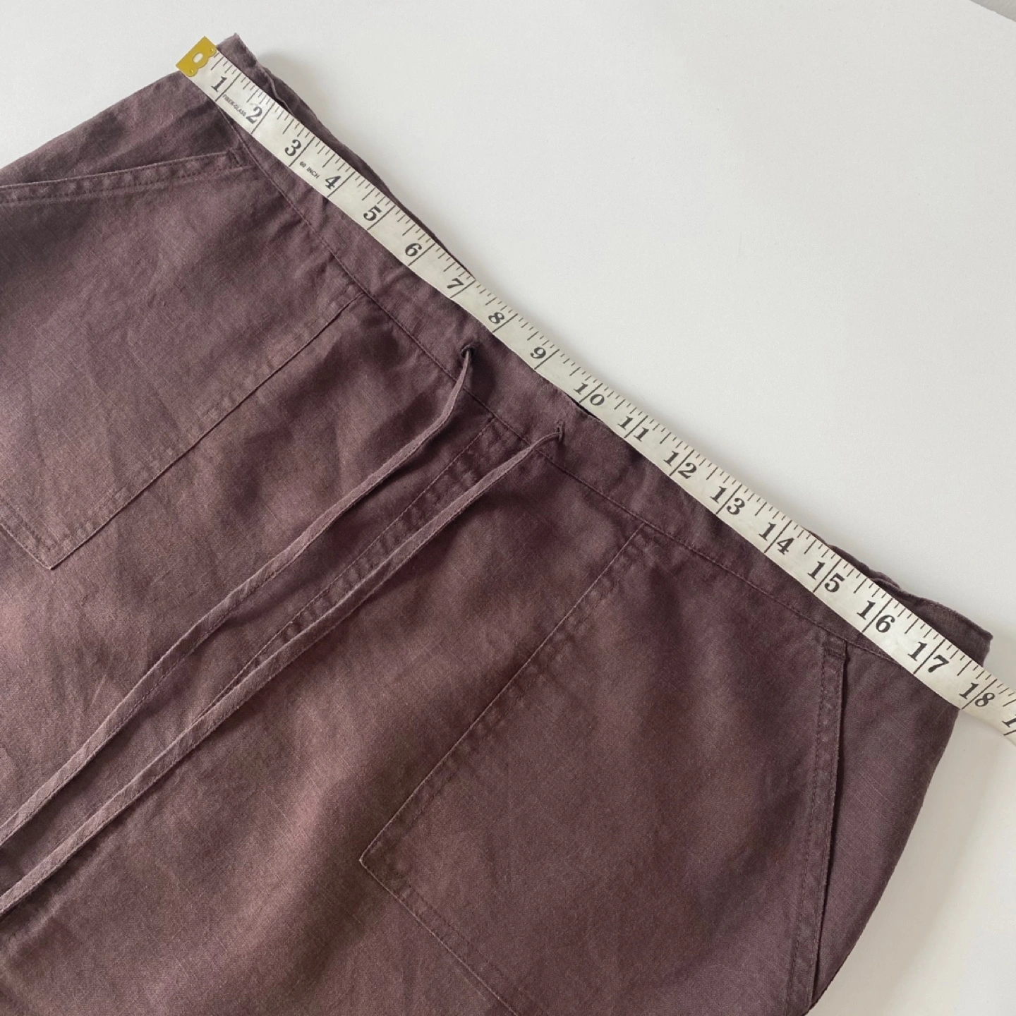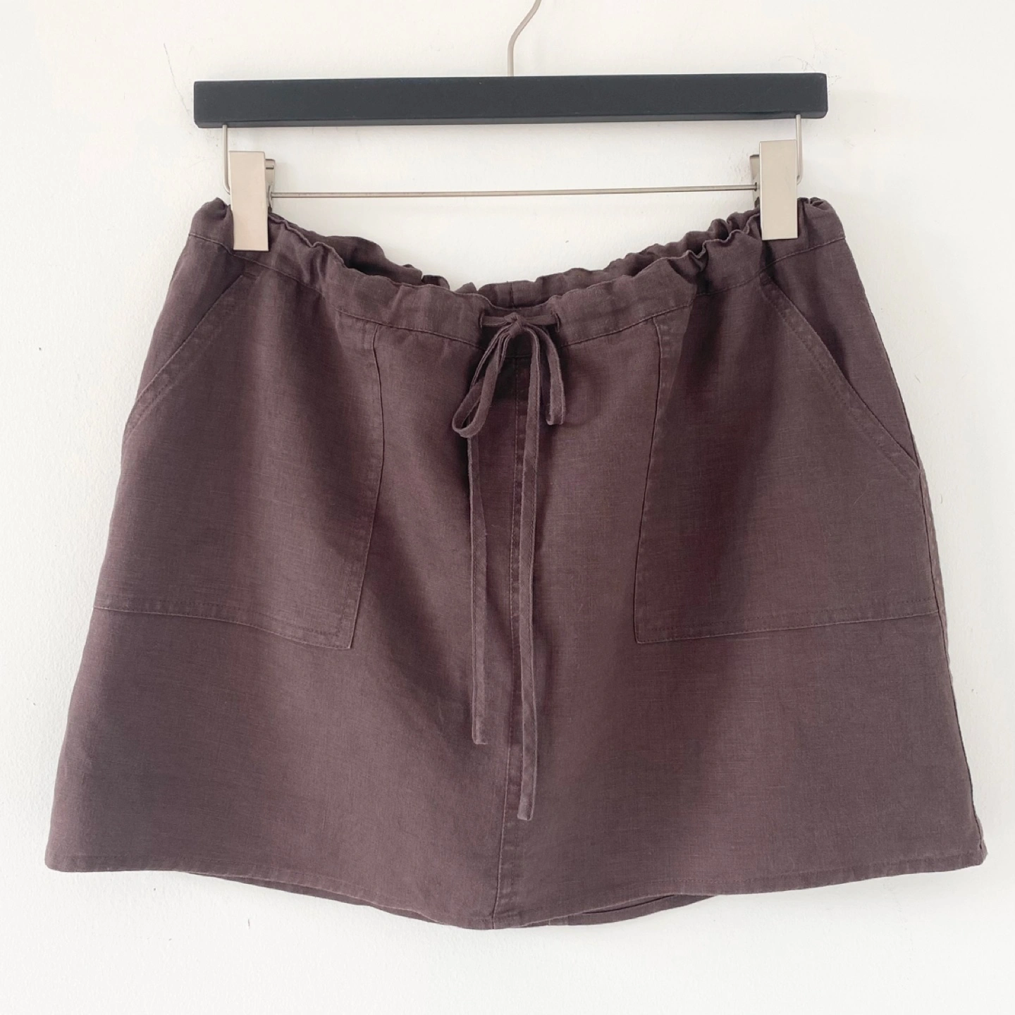 615Pick up only in Leslieville (Queen and Pape) Check out other listings! Y2K pull-on mini skirt with drawstring and side pockets. Made of 100% line in a brown colour. There's some general wear but no staining or damage. It's clean and in excellent condition. Size M Approximate measurements laid flat Waist 18” Center back length 14.5”