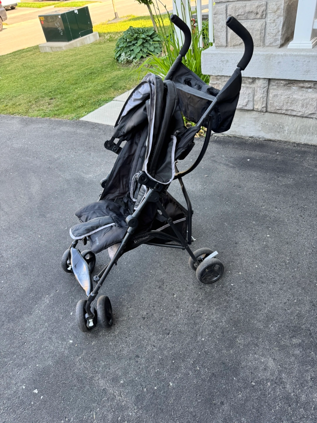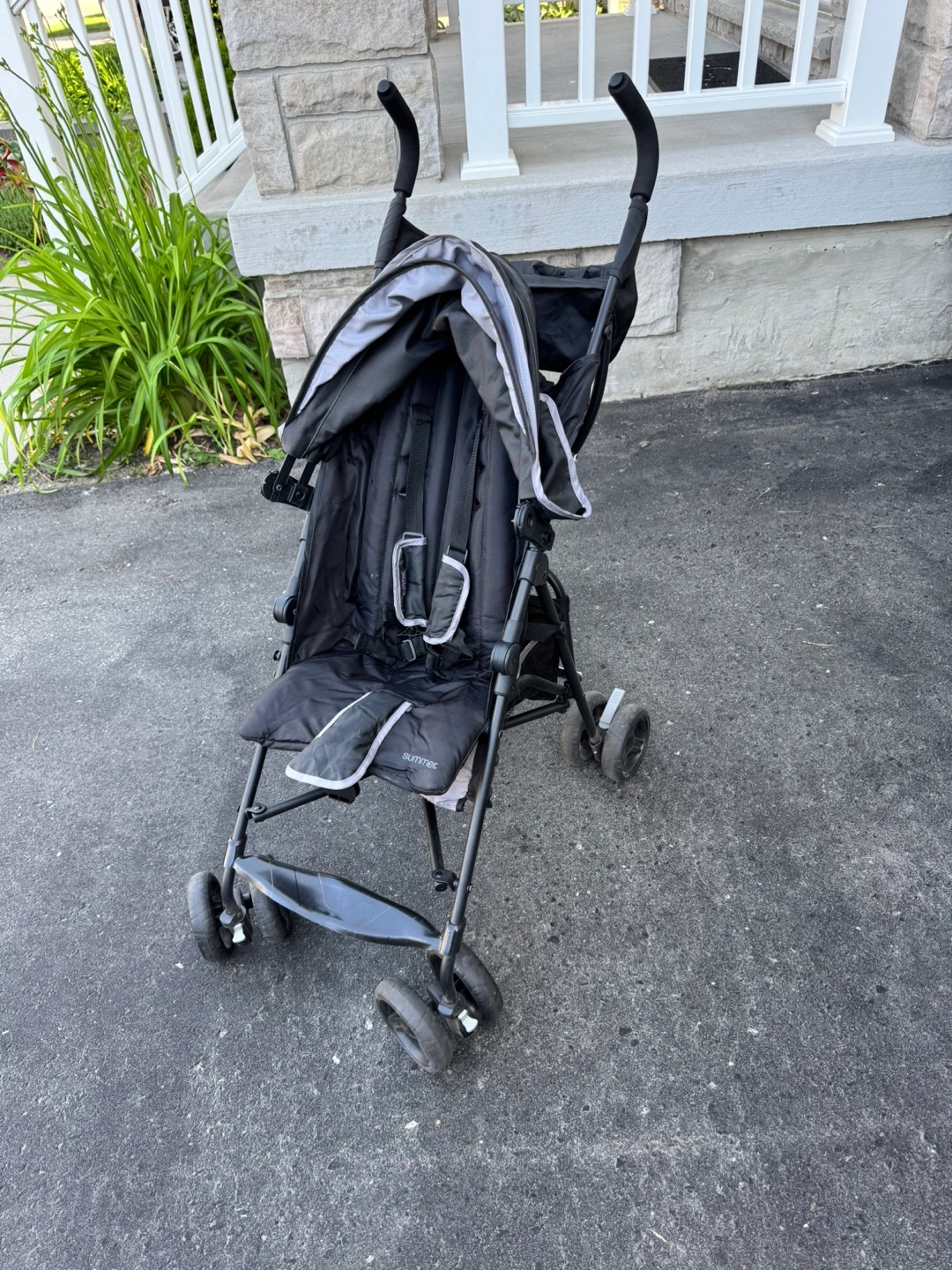 A stroller for your little one. It has a sunshade. Great for a relaxing walk around the neighbourhood with your child.