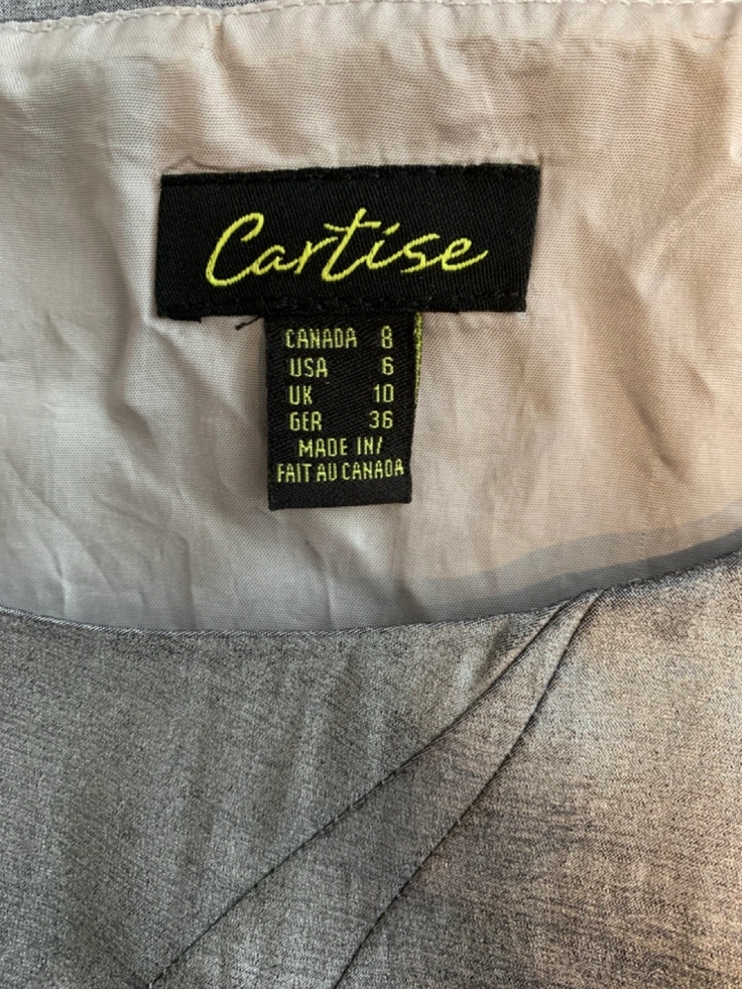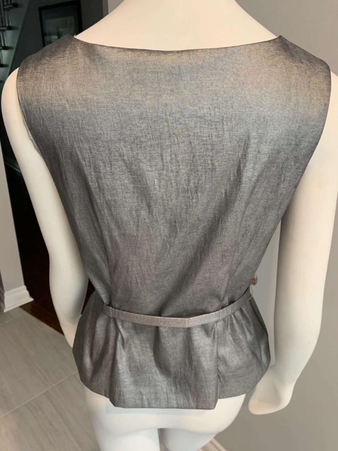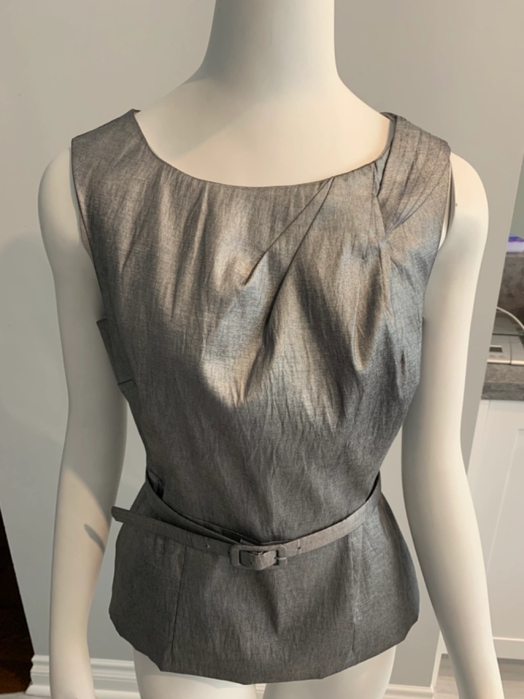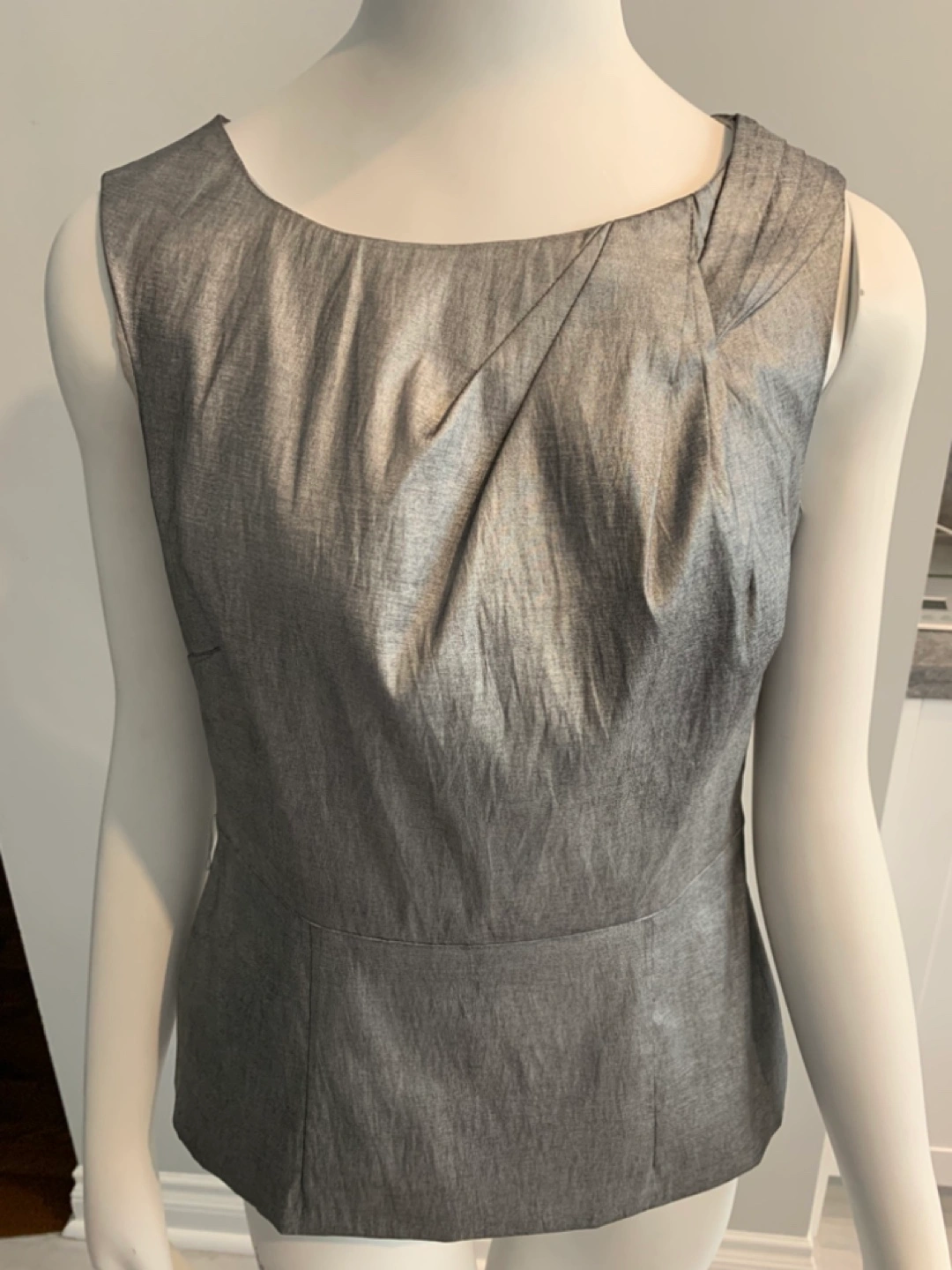 Sleeveless silver top. Can wear loose or belted. Lined. Side zipper