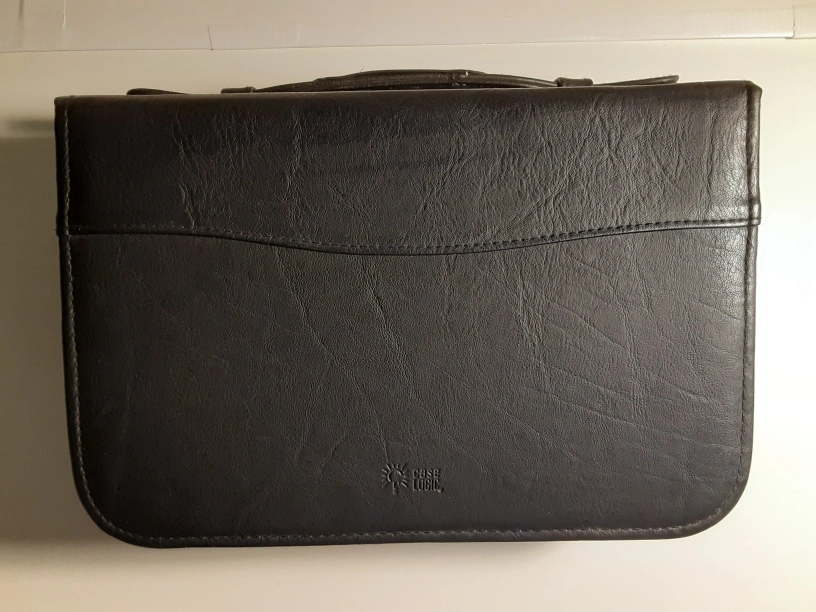 Store your favourite CD's/DVD's in this black faux leather, case logic case and access them with ease. Great for organizing/downsizing collections of media.